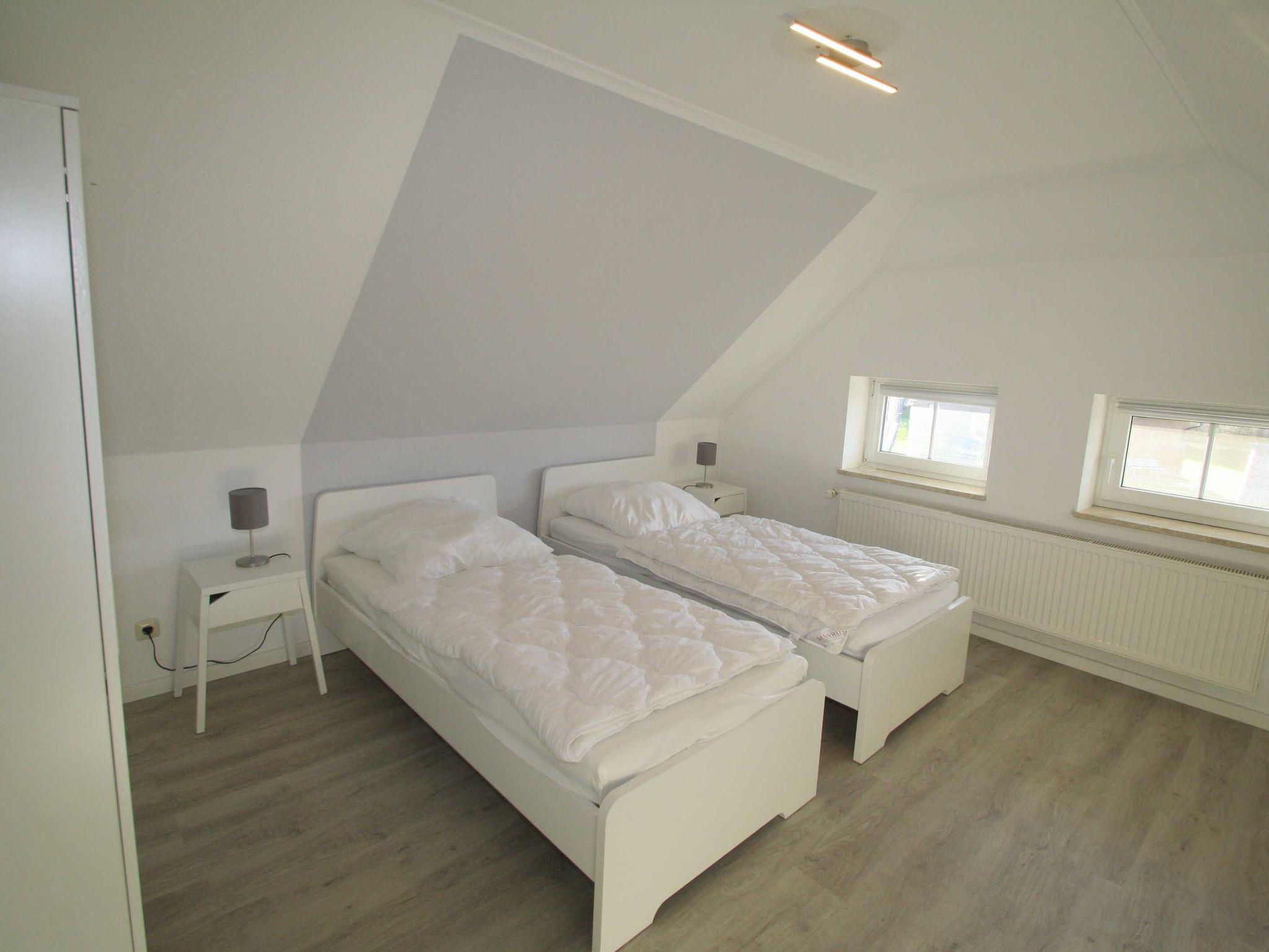 1 Schlafraum mit 2 Einzelbetten (kann zu Doppelbett zusammengestellt werden) und TV