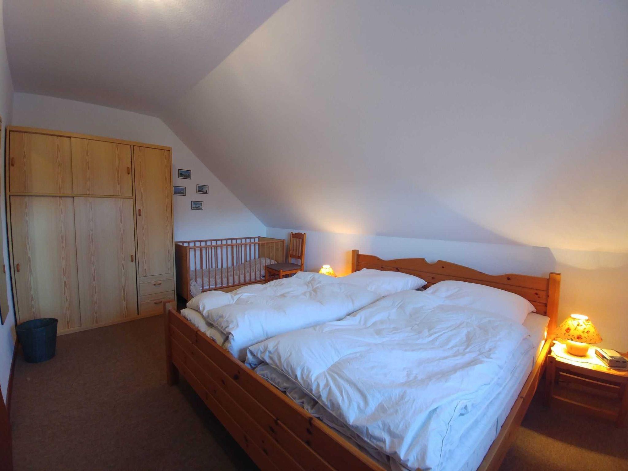 • 1 Schlafzimmer mit Doppelbett (180x200cm) und einem Kinderbett im OG
