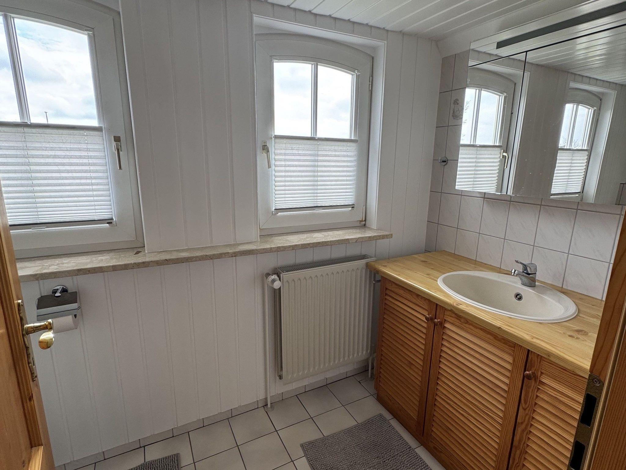 Das sonnendurchflutete Badezimmer sorgt schon morgens für gute Laune und einen perfekten Start in den Tag.