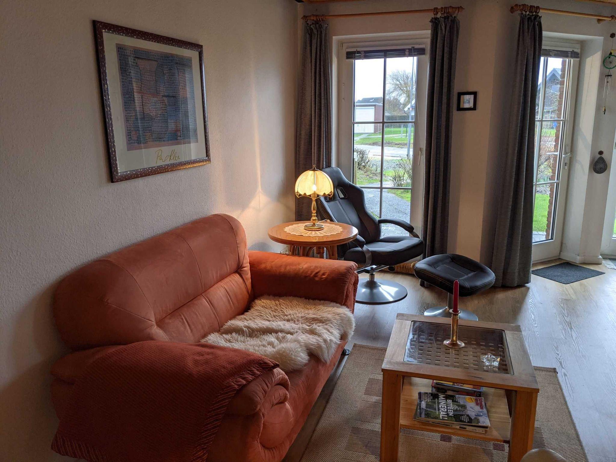 Das individuell eingerichtete Reihenmittelhaus liegt in einer ruhigen Wohnsiedlung in Friedrichskoog-Spitze. Auf ca. 65 qm finden Sie einen Wohnraum mit Kamin und Essecke und eine voll ausgestattete Küche im Erdgeschoss, einen Schlafraum mit Doppelbett, einen Schlafraum mit Einzelbett und ein modernes Bad mit Dusche/WC im ersten Obergeschoss und ausgebautes Dachgeschoss mit Schlafmöglichkeit (unter einer Schräge) für 2 Kinder (in das Dachgeschoss führt eine steile Treppe). Außerdem stehen Ihnen zur Verfügung Gartenmöbel und Gartengrill auf der Terrasse, PKW-Stellplatz, Nachtspeicherheizung, Waschmaschinen- und Trocknermitbenutzung gegen Gebühr. Bettwäsche und Handtücher können auf Wunsch beim Tourismus-Service kostenpflichtig geliehen werden.