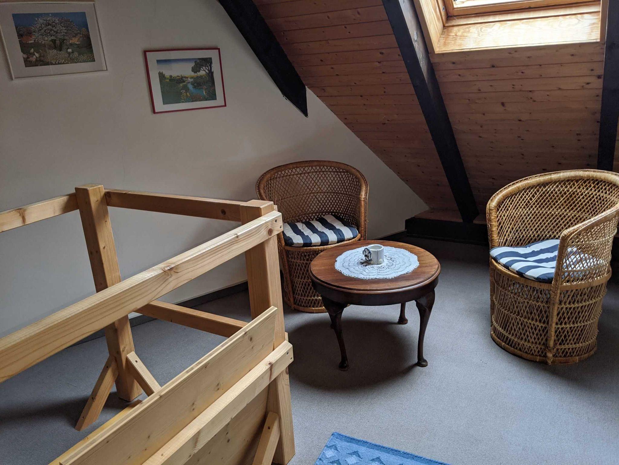 • 1 Schlafzimmer im ausgebauten Dachboden/Schrägen mit 2 Betten