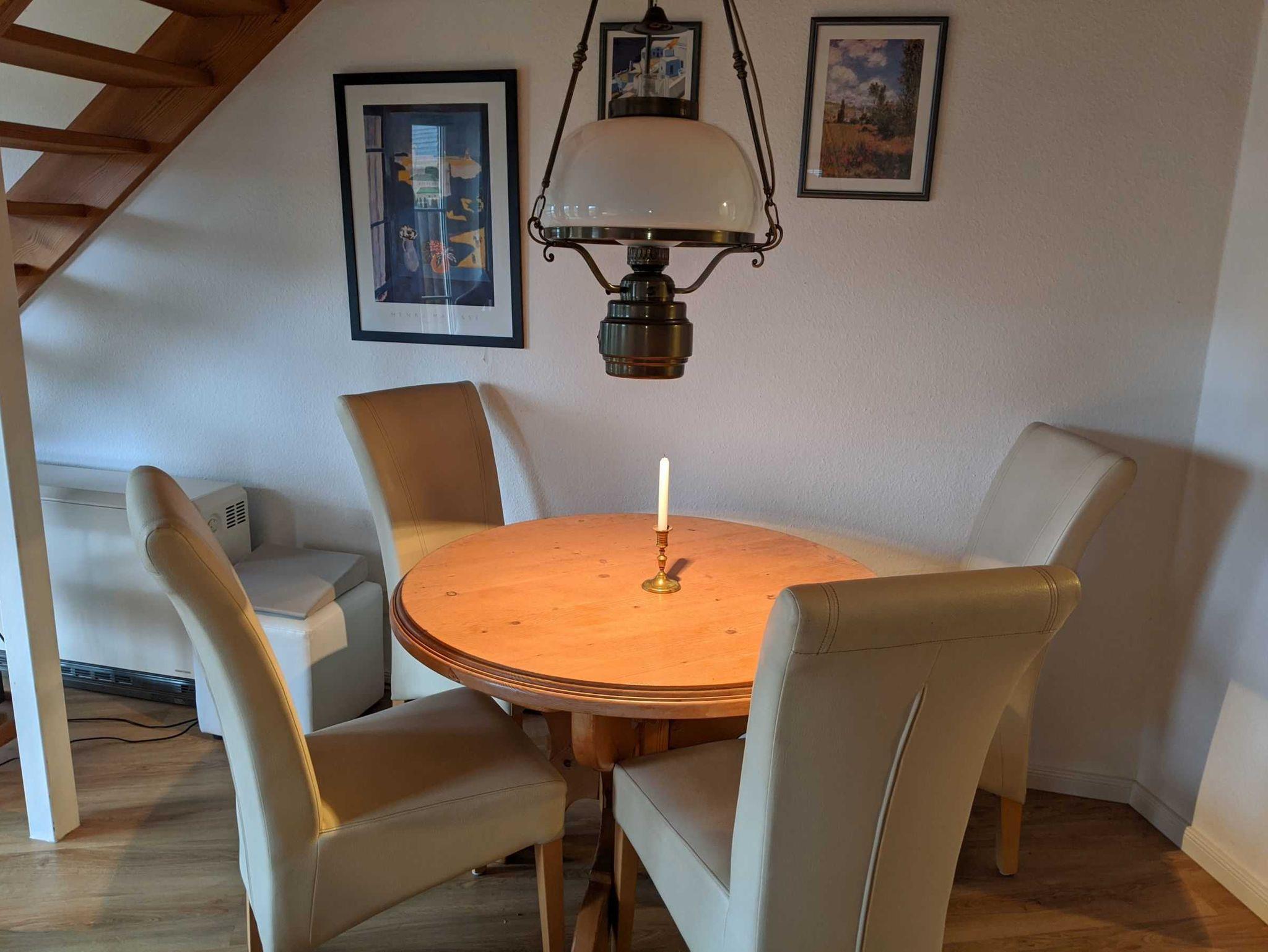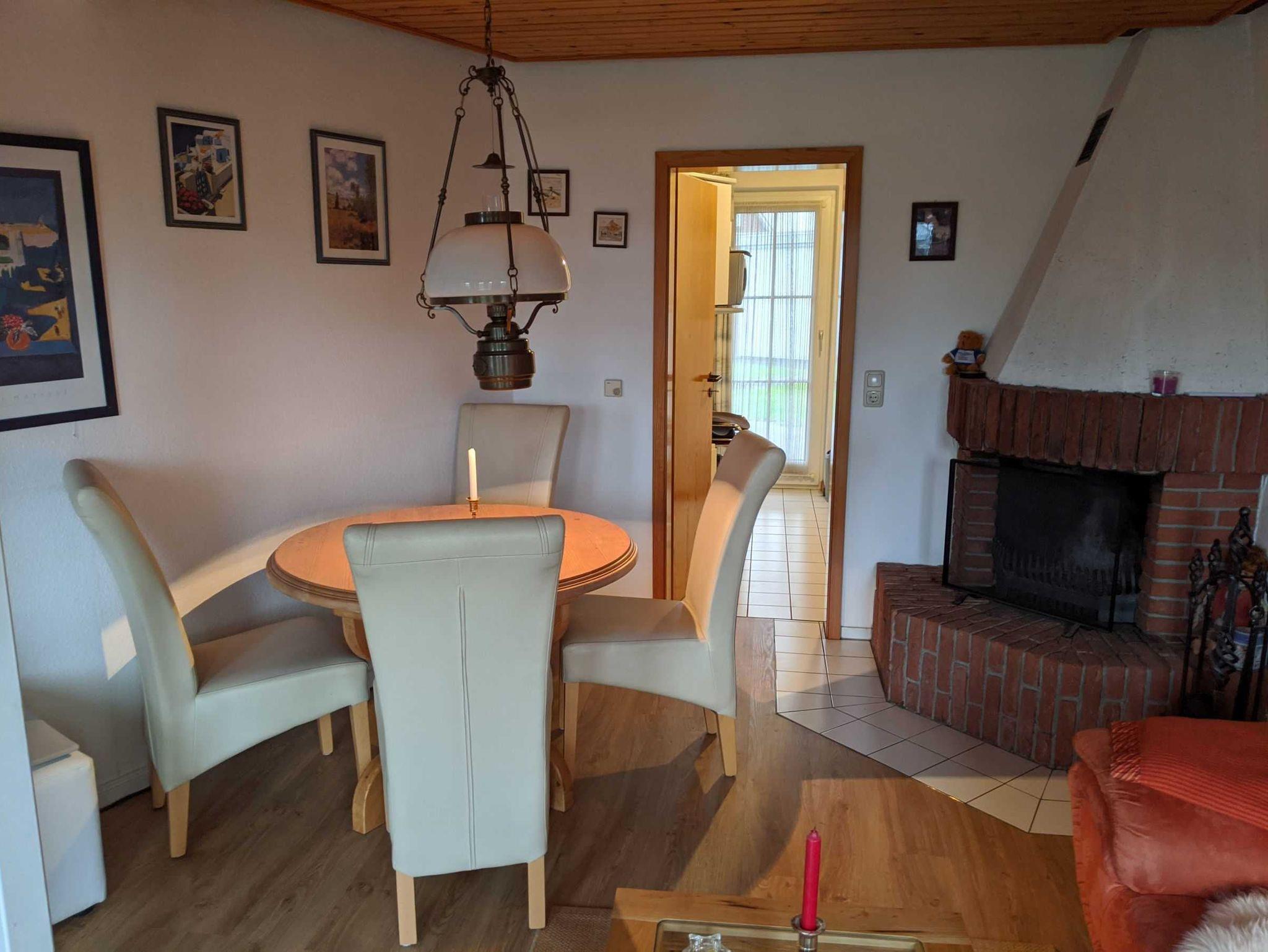 • Wohnzimmer mit Essecke, Kamin und Flachbild-TV