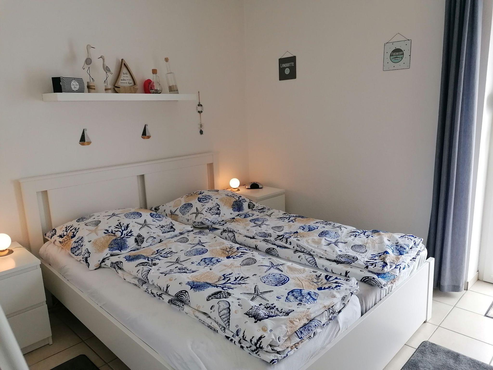 • ein Schlafzimmer mit Doppelbett (1,8 m x2,0 m) sowie Kinderreisebett auf Anfrage, Duschbad, Flur, Windfang und kleiner Abstellraum