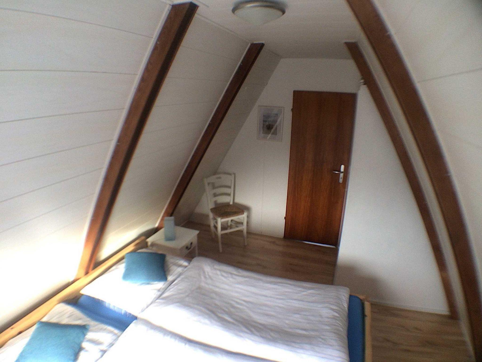 Über den Flur gelangen Sie direkt in den Wohnbereich mit SAT-TV, Flachbildfernseher, DVD-Player, INTERNET-/ DAB+ RADIO und Mini-Anlage mit USB. Über eine steile Treppe erreichen Sie die beiden Schlafzimmer im Obergeschoß.