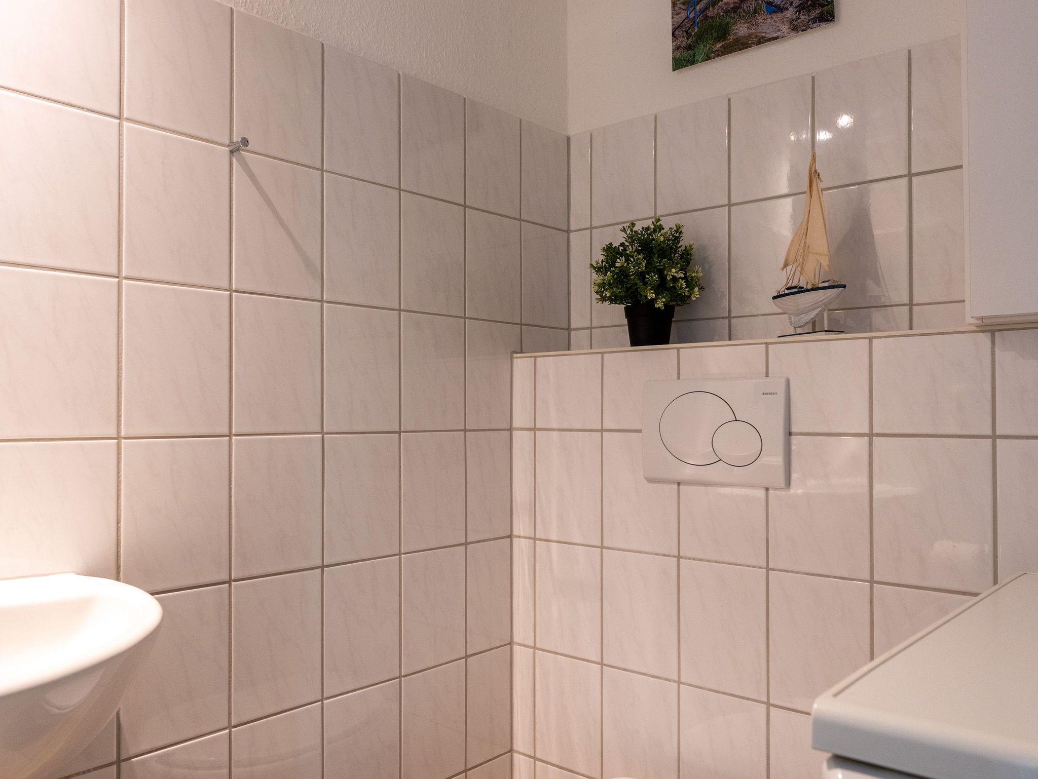 Die Unterkunft erstreckt sich vom Erdgeschoss mit Wohn-/Esszimmer, Terrasse, gut ausgestatteter Küche und Gäste-WC über eine Wendeltreppe ins Dachgeschoss mit einem großen Schlafzimmer mit Doppelbett und Kleinkindbett, einen weiteren Schlafzimmer mit 2 getrennten Betten und einem gemütlichen Wellness-Duschbad mit Regendusche.