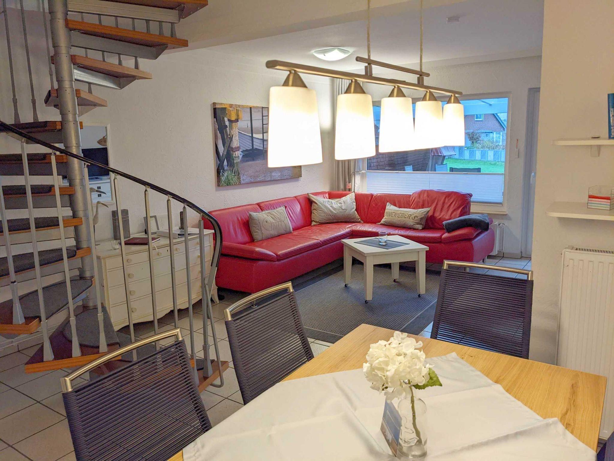Erleben Sie die Nordsee in einer ruhig gelegenen Komfort-Ferienhaushälfte - nur 300 m Meter vom Deich gelegen. Das Ferienhaus mit Terasse und Garten geht über 2 Etagen und lässt keine Wünsche übrig. Unser Ferienhaus (65qm) bietet Ihnen ein geräumiges Wohnzimmer mit Panorama-Fenster und einem Zugang zur Terrasse. Zwei Schlafzimmer (alle Betten sind bezogen), ein Badezimmer, sowie eine separate Küche mit allem was das Kochherz begehrt, lassen keine Wünsche übrig. In unserem grossen Garten stehen Ihnen ein Grill, Gartenmöbel, Liegen und ein Strandkorb zur Verfügung. Da wir das Ferienhaus mit einer Waschmaschine und einen Trockner ausgestattet haben, ist das Haus auch ideal für längere Aufenthalte. Ein Wlan Anschluß und ein Flat-TV sind vorhanden.