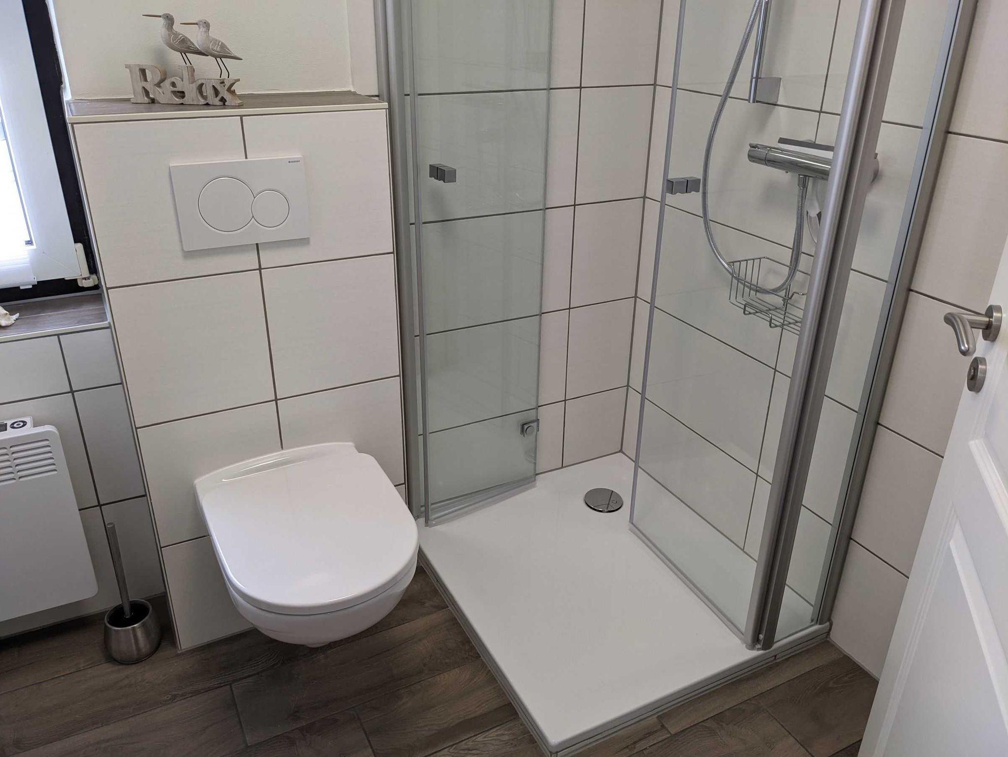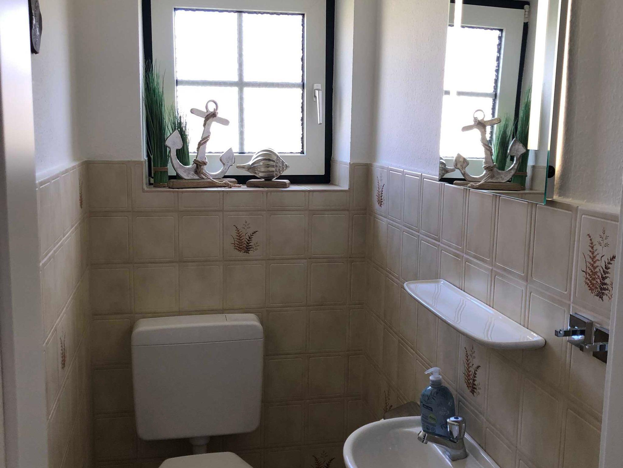 Im Erdgeschoss befindet sich ein WC mit Waschbecken, ein Abstellraum mit Waschmaschine, die Terrasse mit Gartenmöbeln, Spiel-/Liegewiese, Strandkorb, 2 Fahrräder, Gartengrill runden die Ausstattung ab.