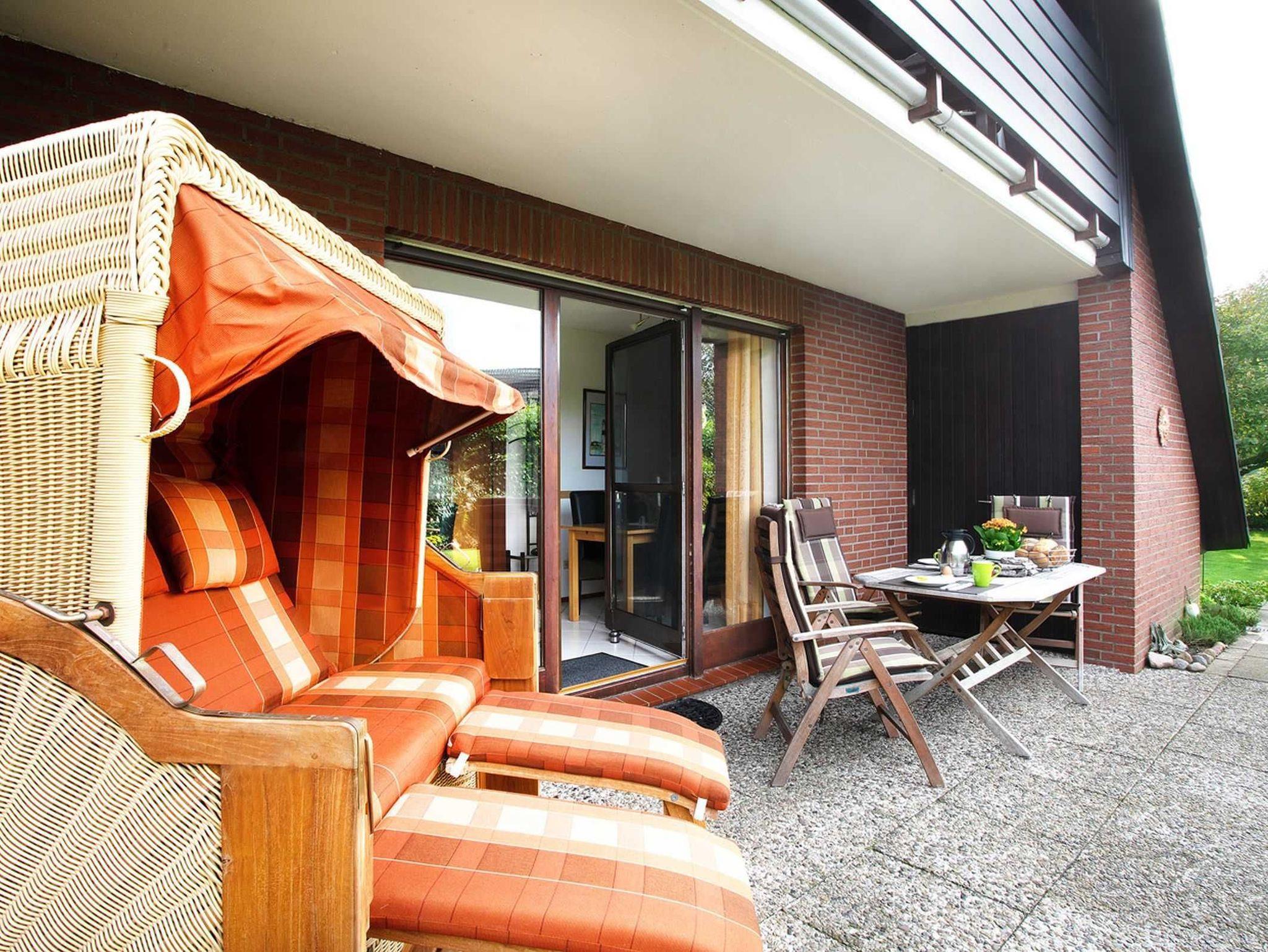 • 2 Terrassen, Balkon, Gartenmöbel, Strandkorb am Haus,