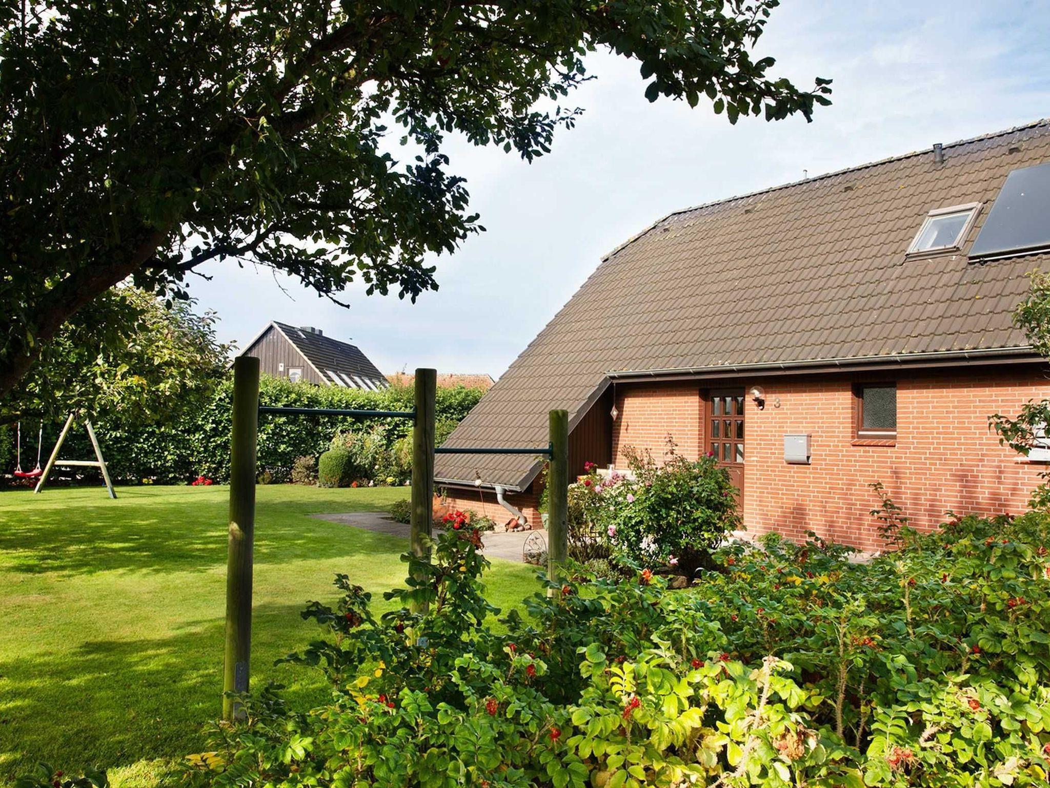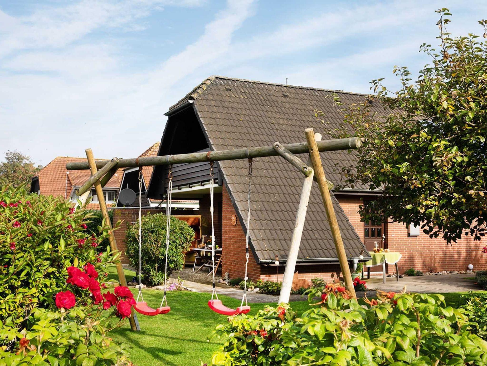 Das durch Zäune eingerahmte Grundstück umfasst 700qm mit großen Rasenflächen, Bäumen und Sträuchern sowie Stellplätzen für zwei Fahrzeuge. Im Außenbereich befindet sich neben jeweils befestigter West- und Südterrasse auch eine große Doppelschaukel und eine Sandkiste für die kleinen Feriengäste. Exklusive Holzgartenmöbel, Strandkorb, Sonnenschirm und -liegen sowie ein Grill stehen Ihnen ebenfalls zur Verfügung. Mit den drei hauseigenen Fahrrädern können Sie bequem die leicht befahrbare Umgebung erkunden.