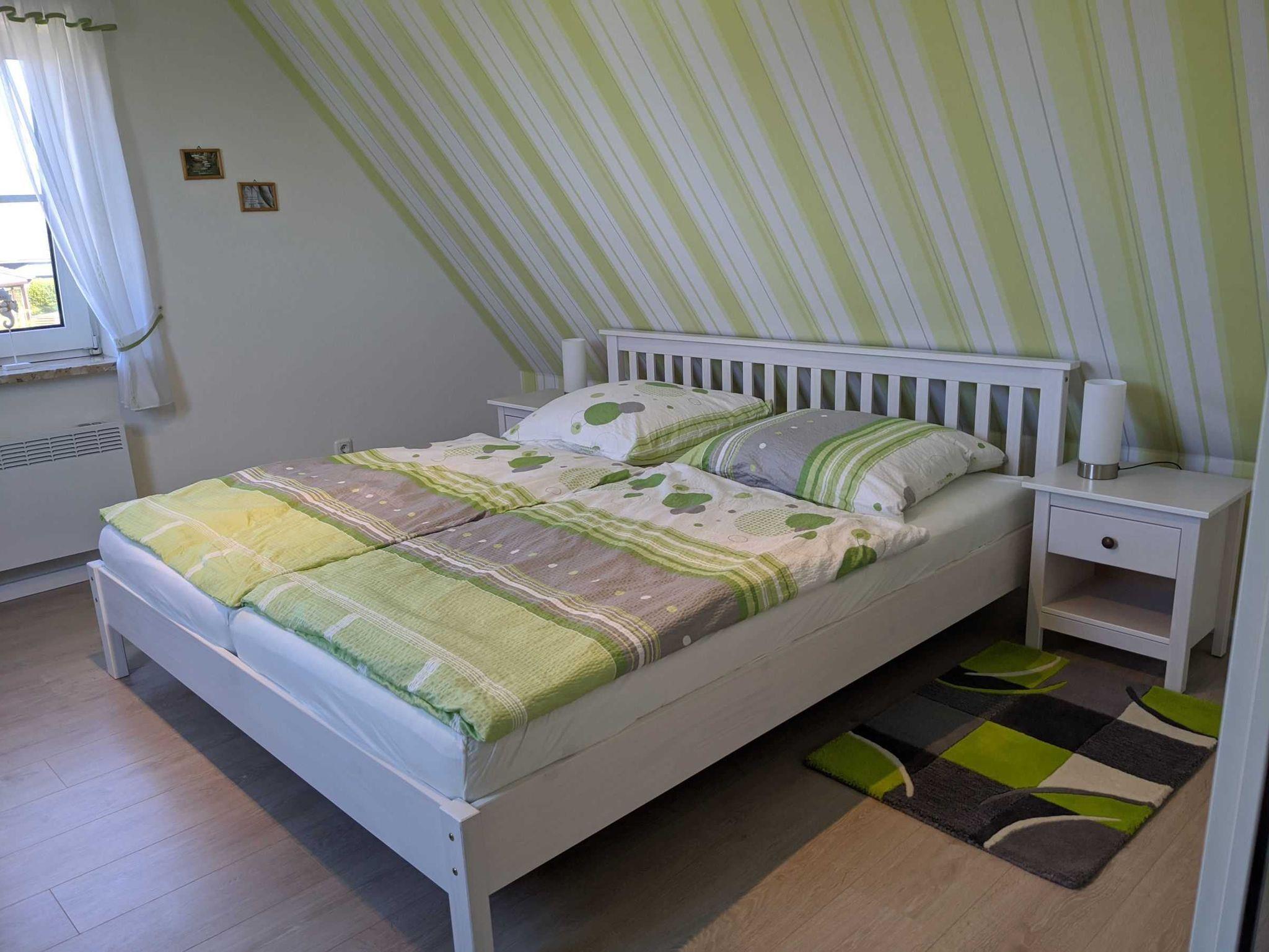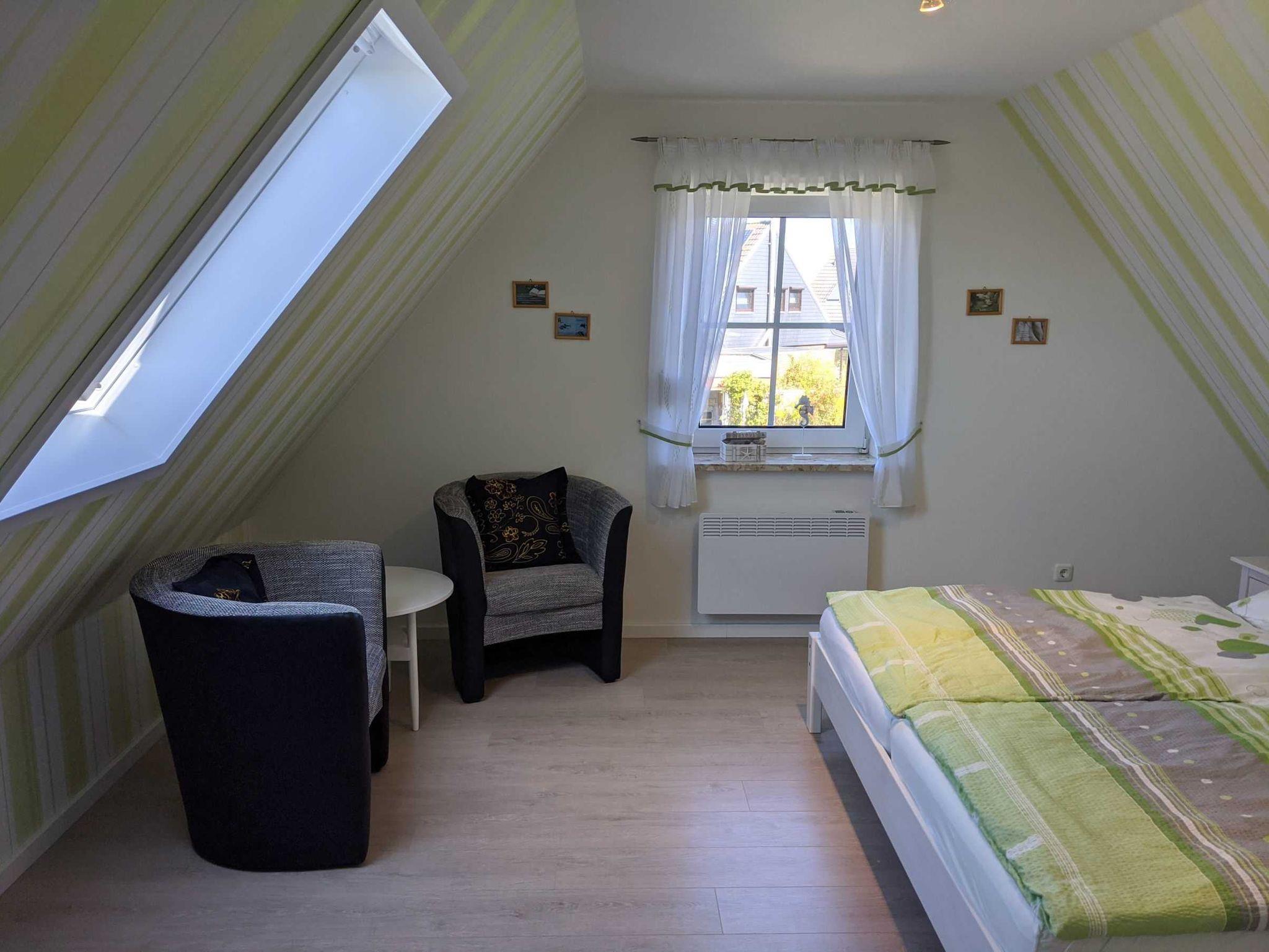 Großes Schlafzimmer mit Doppelbett (180x200cm), kleine Sitzgruppe mit zwei Sesseln. Schlafzimmer mit zwei Einzelbetten (90x200cm) und kleiner Kinderspielhöhle
