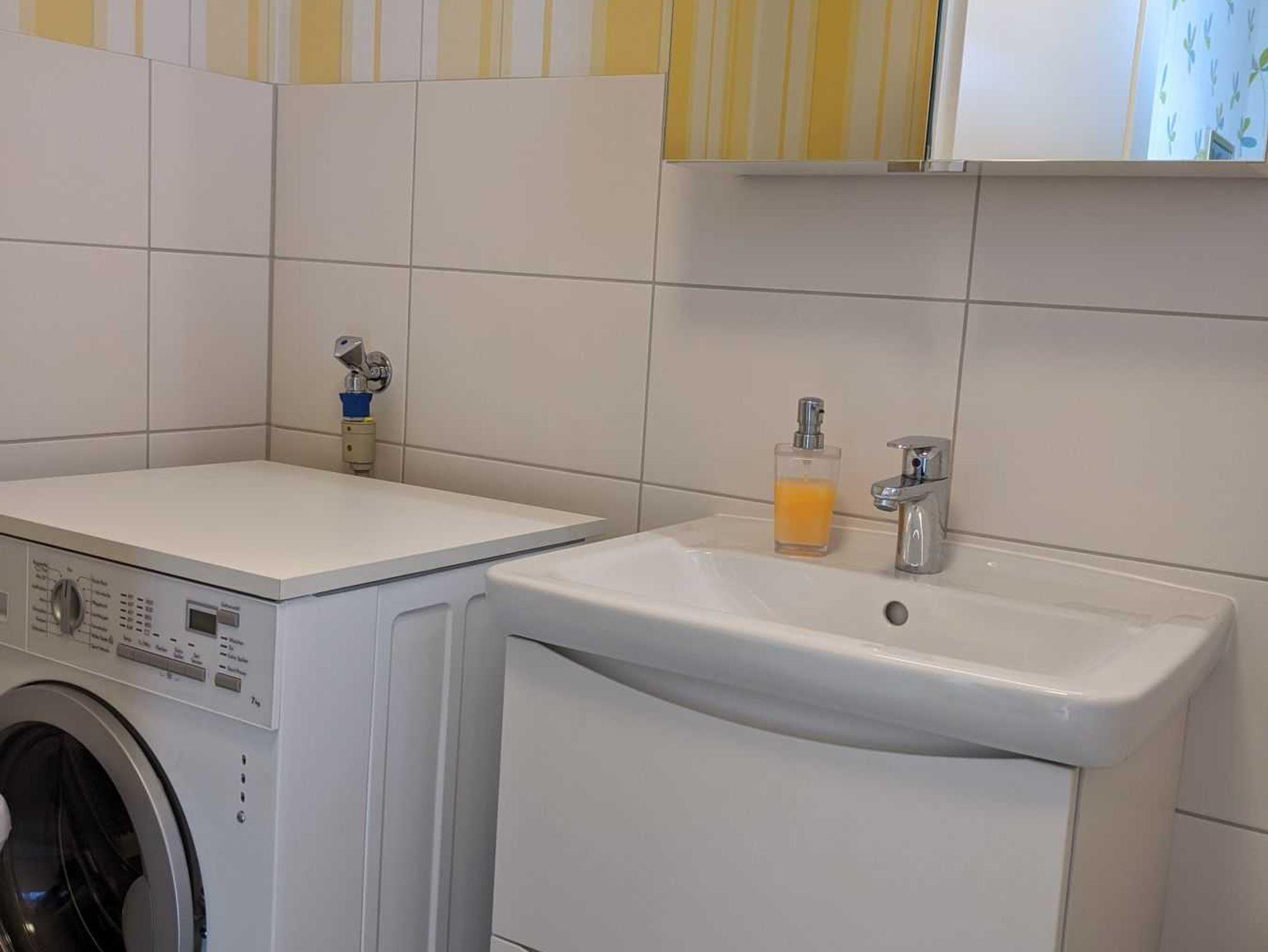 • Bad mit Toilette & Waschbecken und Waschmaschine