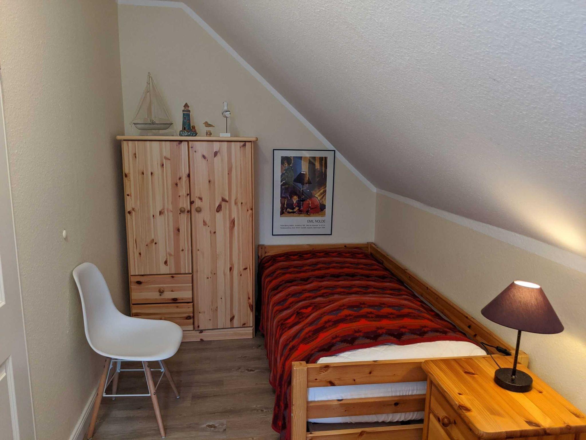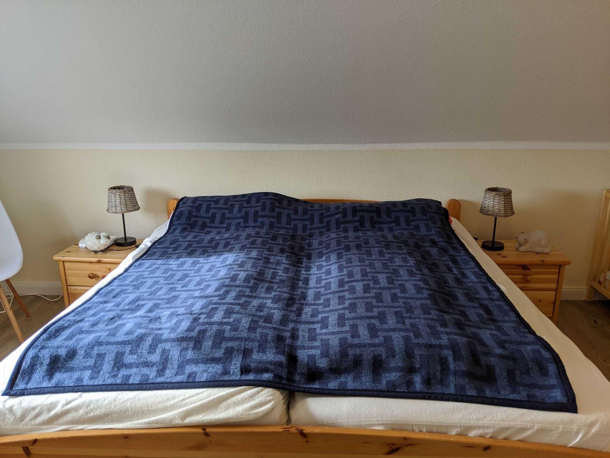 Ein Schlafzimmer ist mit Doppelbett (180 x 200cm). Kinderbett (60 x120 cm), Kleiderschrank und einer Kommode ausgestattet. Hier sind ein weiterer Fernseher mit SAT-HD und ein Radiowecker vorhanden. Das zweite Schlafzimmer ist mit zwei Einzelbetten (90 x 200cm) sowie zwei Kleiderschränken eingerichtet.