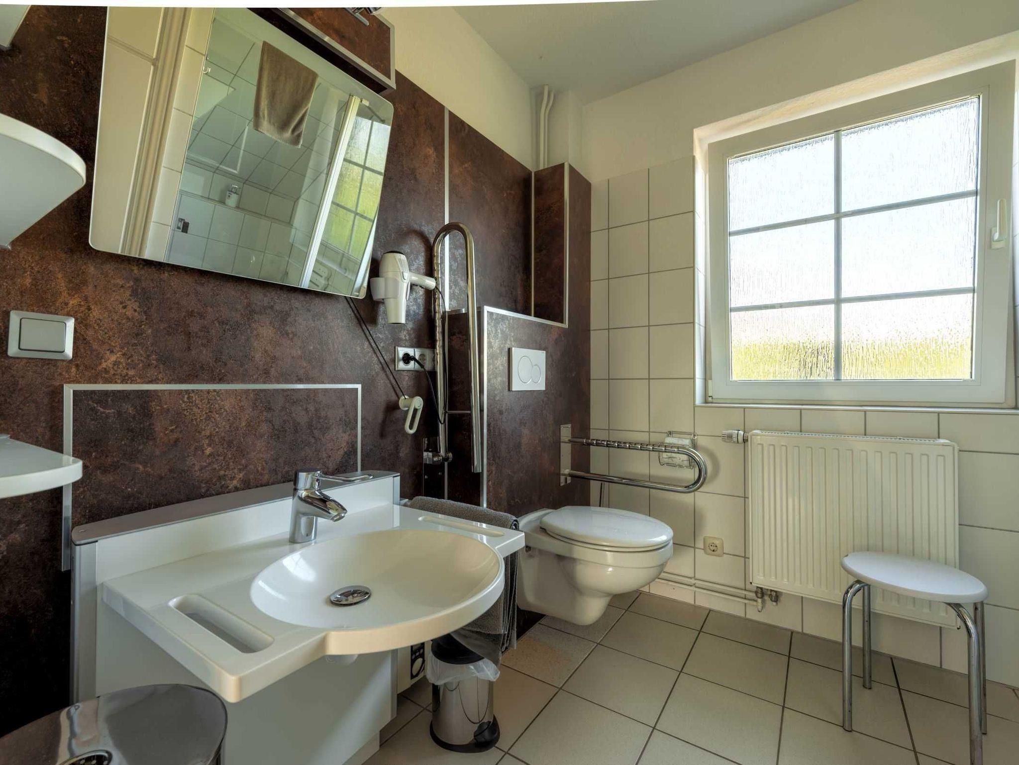 • Dusche/WC für Rollstuhlfahrer geeignet - es besteht die Möglichkeit mit dem Rollstuhl unters Waschbecken zu fahren