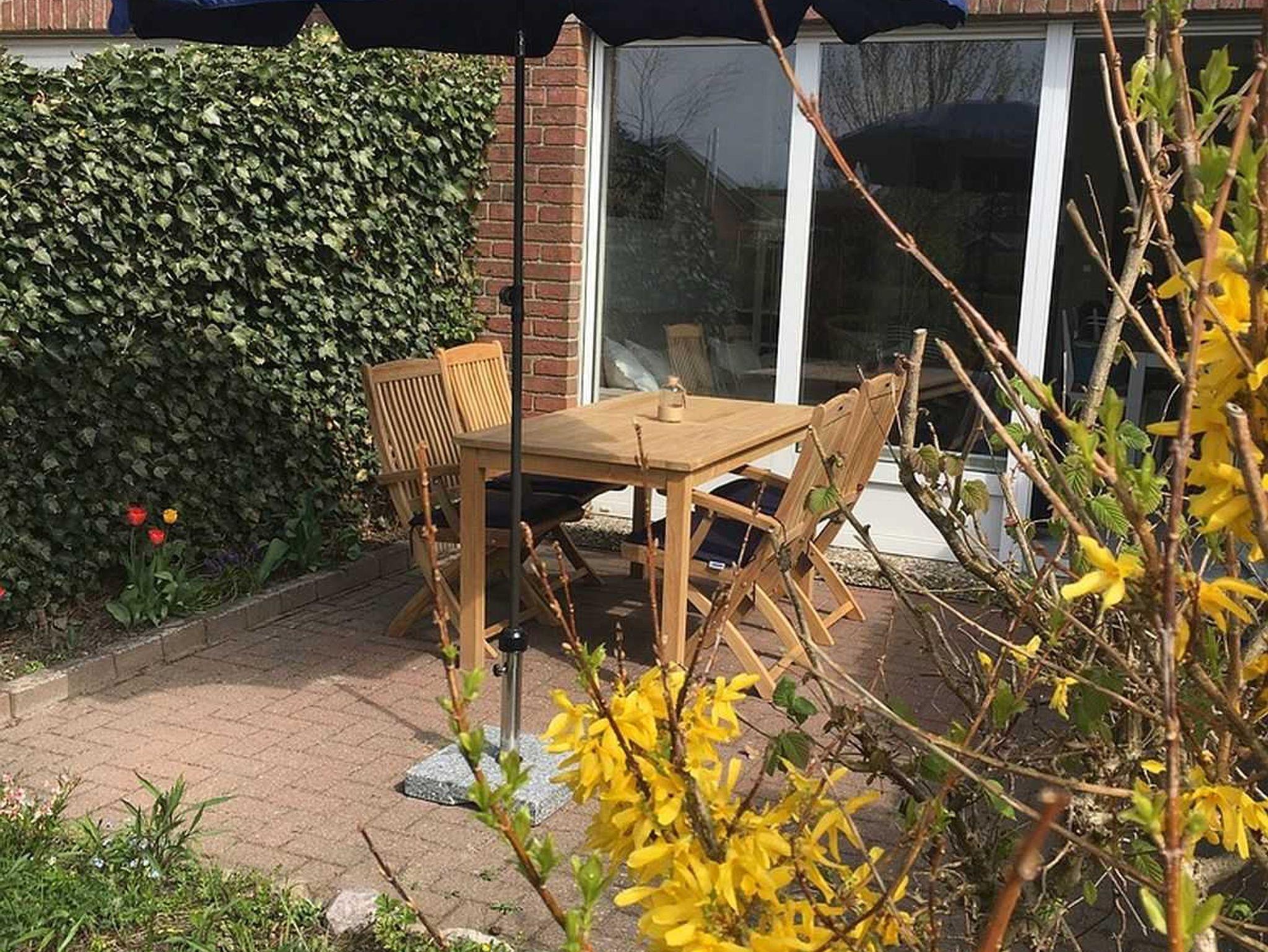 untergebracht werden können. Dort befindet sich auch ein Bollerwagen, der gerne für die Strandausflüge genutzt werden kann. Die gemeinschaftliche Wiese vor der Terrasse steht Ihnen ebenso zur Verfügung. Ein Parkplatz befindet sich direkt am Haus.