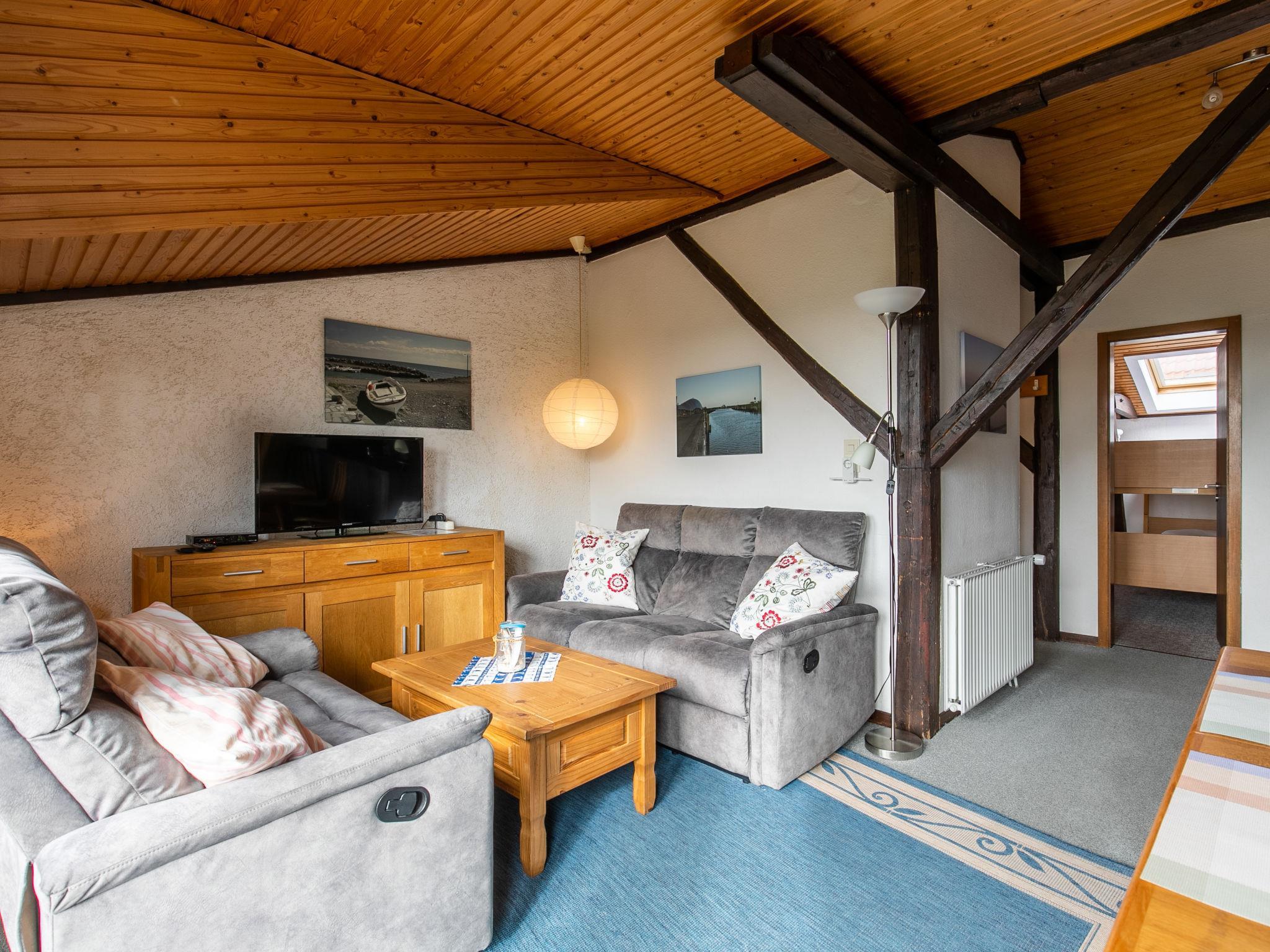 4-room apartment 50 m2 on 1st floor. Object suitable for 4 adults + 2 children. Practical furnishings: living/dining room with satellite TV (flat screen), radio and DVD. Exit to the balcony. 1 room with 1 french bed (140 cm, length 200 cm). 1 room with 2 beds. 1 room with 1 x 2 bunk beds. Open kitchen (oven, dishwasher, 4 ceramic glass hob hotplates, toaster, kettle, electric coffee machine). Shower/WC. Balcony furniture. Panoramic view. Facilities: children's high chair. Internet (WiFi, free). Parking (1 car). Please note: non-smokers only. Smoke alarm, fire extinguisher. Access via external staircase and balcony. Bookings accepted for holiday purposes only.
