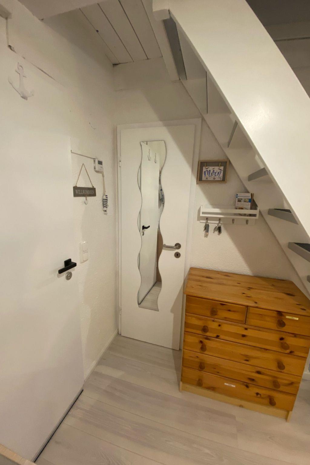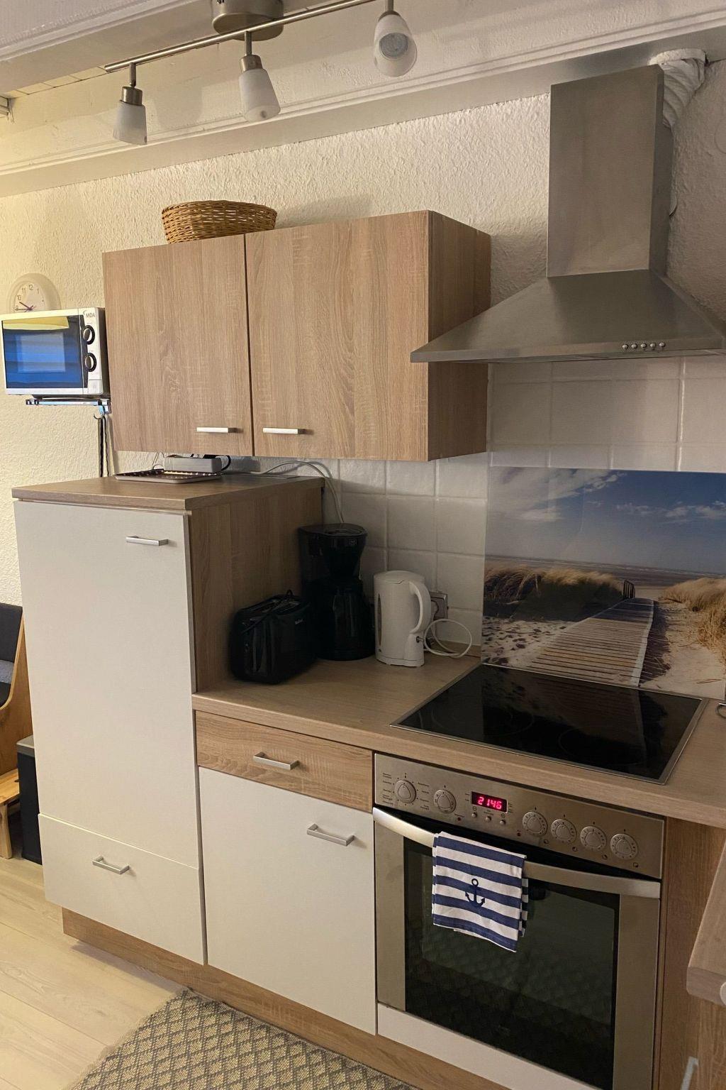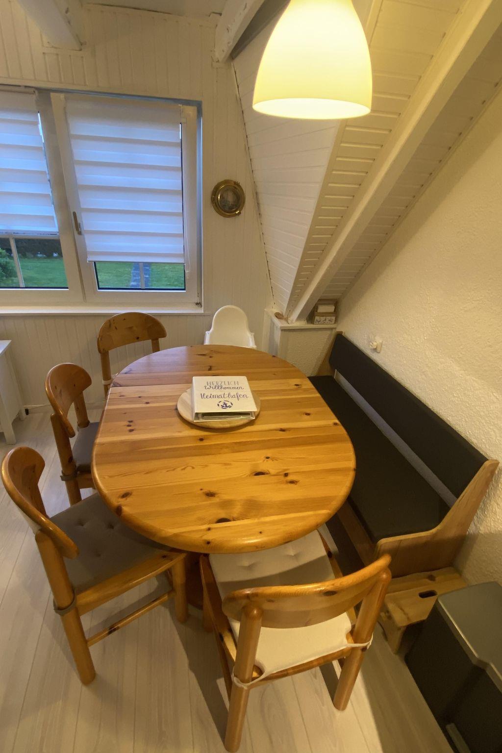Freshly renovated in June 2021 and lovingly furnished, the flat comprises a living and dining area with a modern and well-equipped kitchen. The equipment leaves nothing to be desired: Ceramic hob, oven, microwave and much more are available. A cosy seating area invites you to linger and relax. In the modernised shower room you will find everything you need for a refreshing shower experience. A steep staircase takes you up to the converted loft, which offers two sleeping areas separated by a wall with double beds (140 x 200 and 120 x 200) and plenty of storage space. There is also a second bedroom on the other side of the hallway, ideal for older children or grandparents.