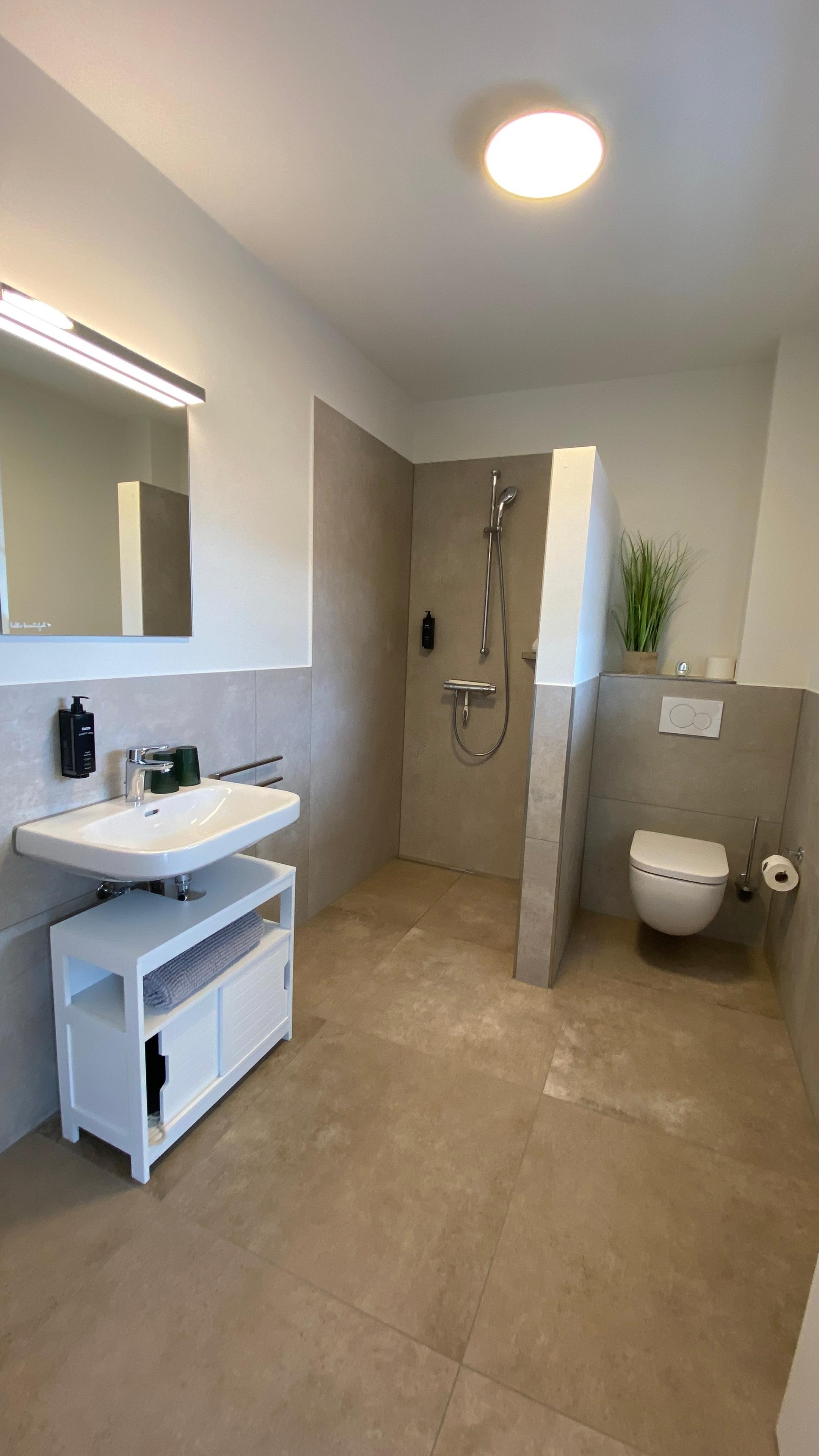 Ein Restaurant, sowie ein Edeka, Fleischer und Blumenladen sind direkt vor Ort und weniger als in einer Fußminute zu erreichen.