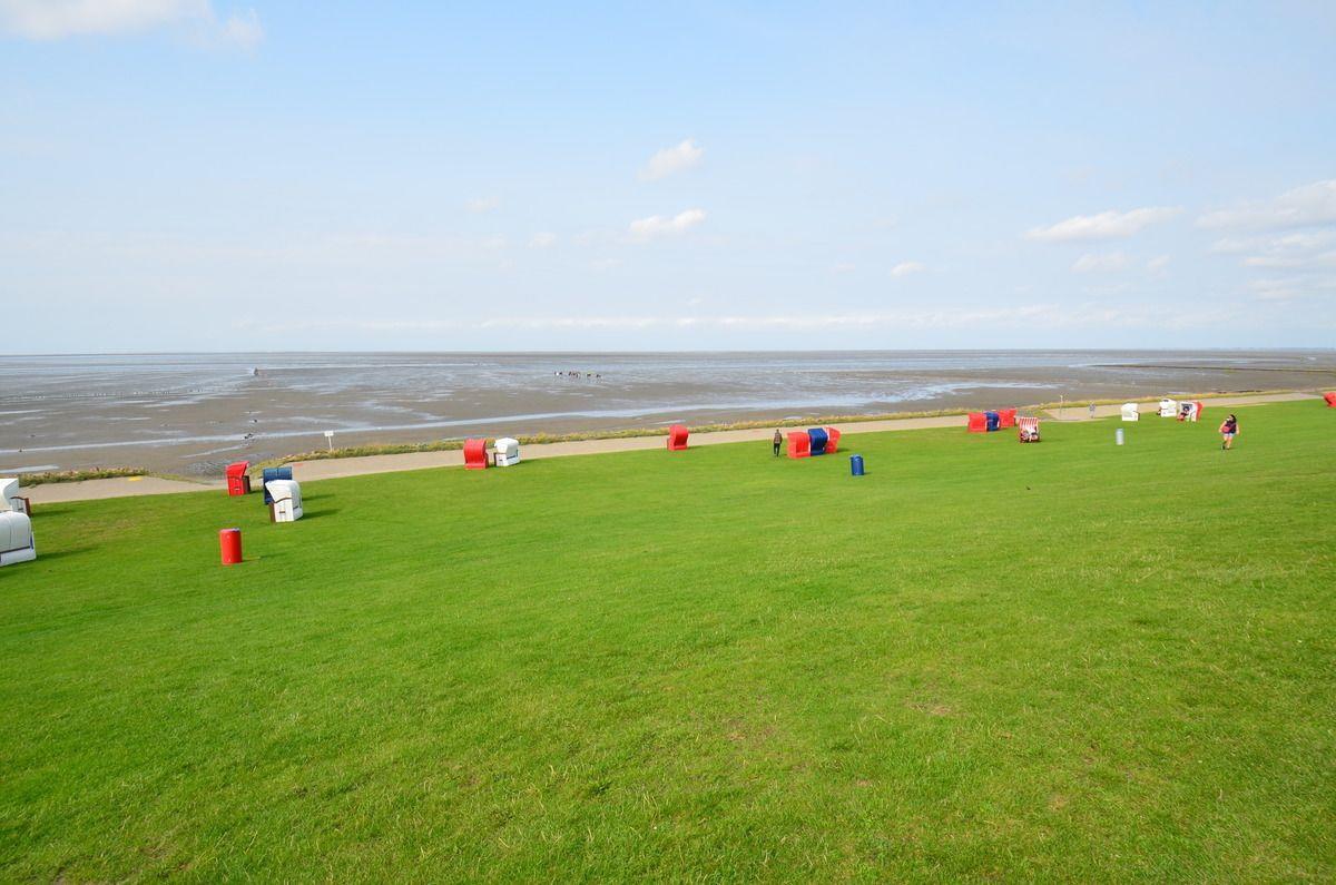 Grüne Marschwiesen wechseln mit ausgedehnten Kohlfeldern, endlose Deichlinien begrenzen den westlichen Horizont, weite Blicke wandern über Watten und Fluten. Hier, auf Böden, die in Jahrhunderten mühseligen Kampfes dem "Blanken Hans", der oft stürmischen Nordsee, abgerungen wurden, liegt auch ihr Urlaubsort.