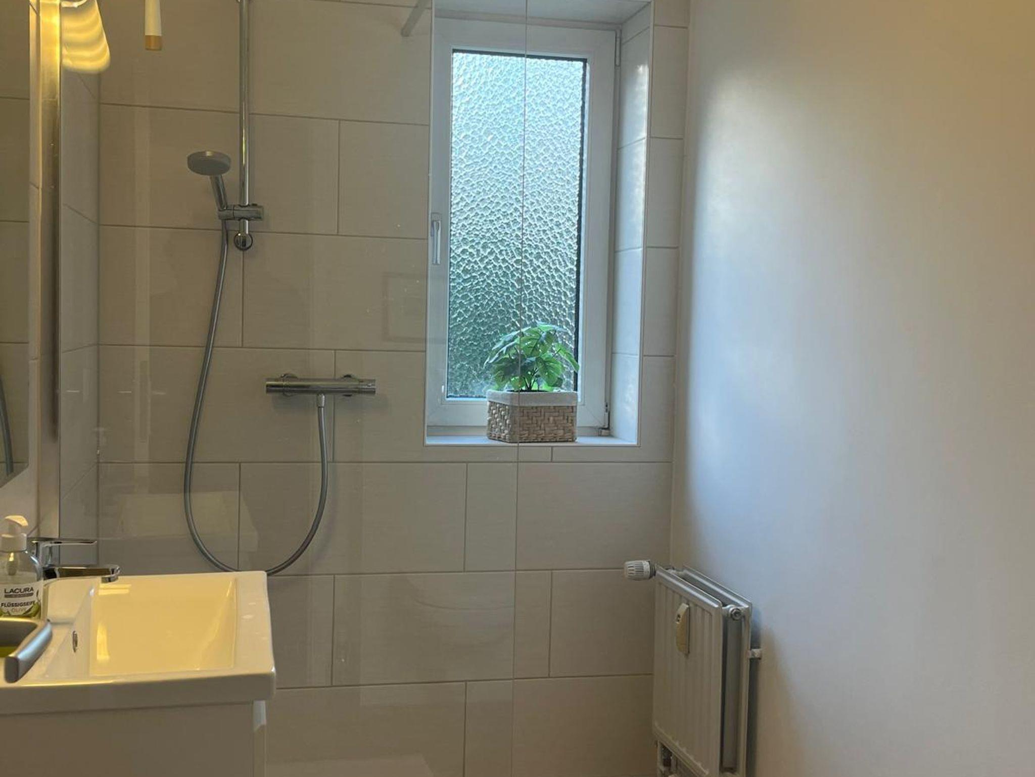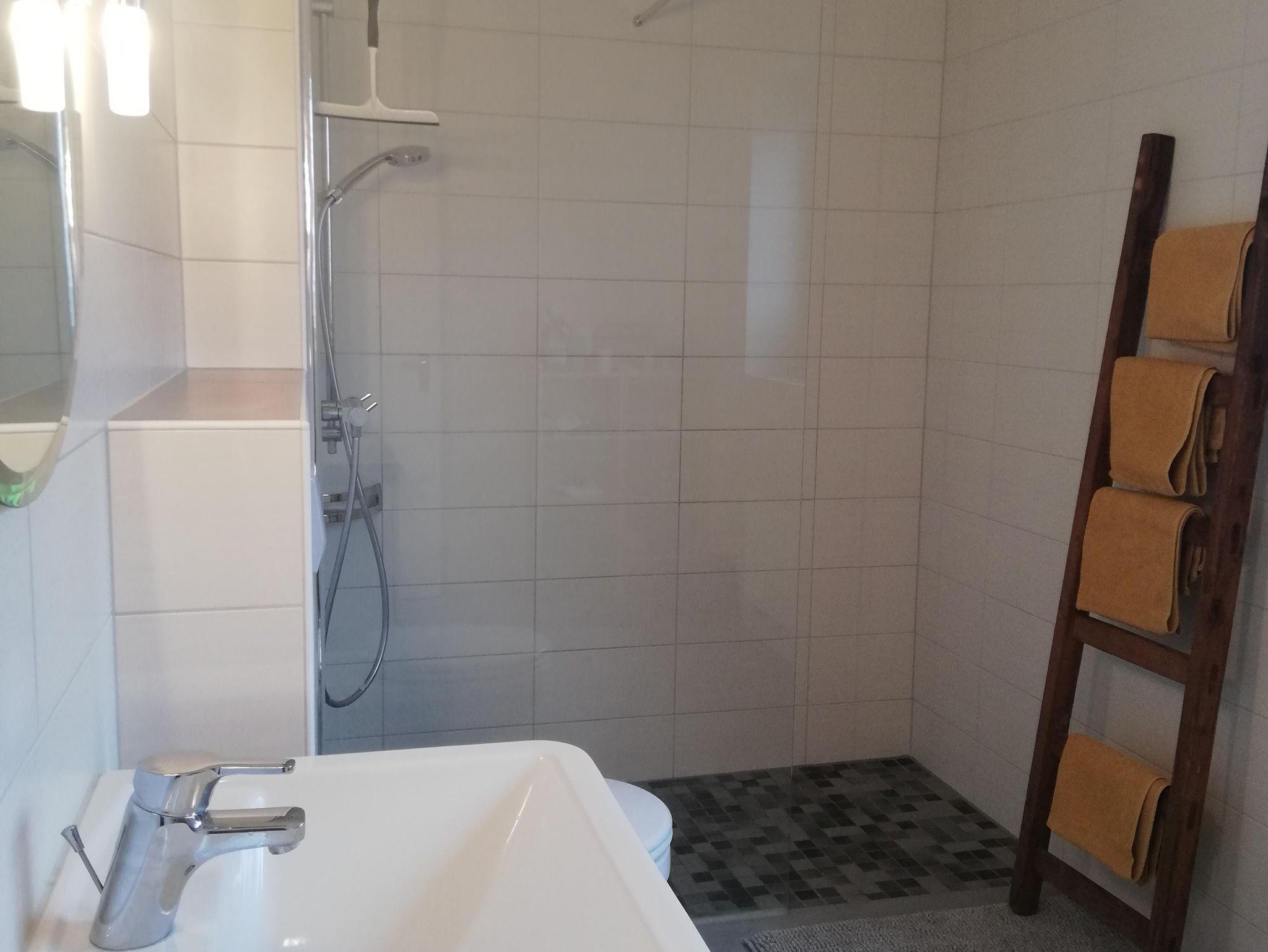 Die beiden modernen Badezimmer sind jeweils mit WC, Waschbecken und einer ebenerdigen Dusche ausgestattet. Eine Fußbodenheizung im großen Bad erhöht den Wohlfühlfaktor. Ein Föhn pro Badezimmer ist vorhanden, Handtücher werden Ihnen natürlich gestellt.