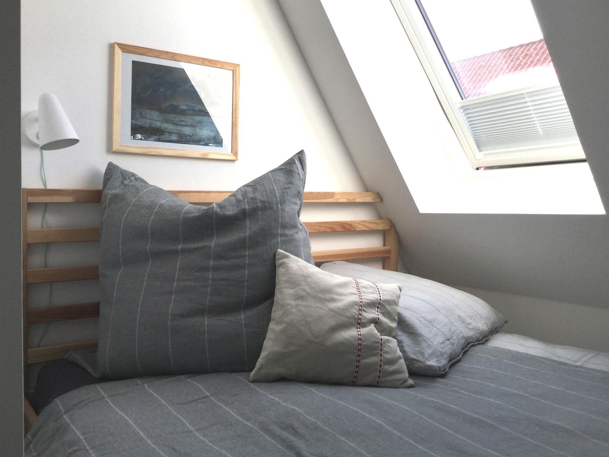 Im Erdgeschoss befindet sich die Küche mit Cerankochfeld, Backofen und Geschirrspühlmaschine sowie Kühlschrank mit Gefrierfach, der Flur und ein Esszimmer sowie das Gäste-WC.Ein Schlafzimmer mit Doppelbett (160 cm) und ein Schlafzimmer mit eingebautem französischen Bett (140 cm) finden sich im ersten Obergeschoss sowie das Duschbad und eine kleine Balkonterrasse.Im zweiten Obergeschoss befindet sich das Wohnzimmer mit TV (DVBT-2, DVD/Blue-Ray-Player, CD-Player mit Radio) und weiteres französisches Bett (140 cm) in der Schlafkammer unter dem Dach.Kein WLAN verfügbar.