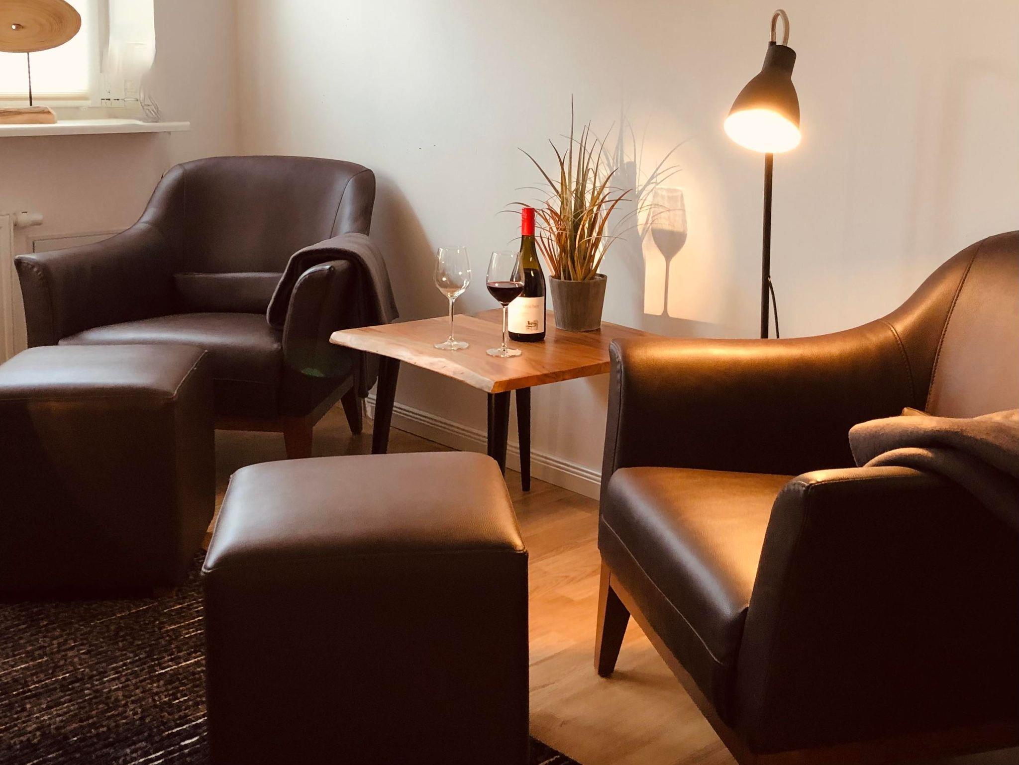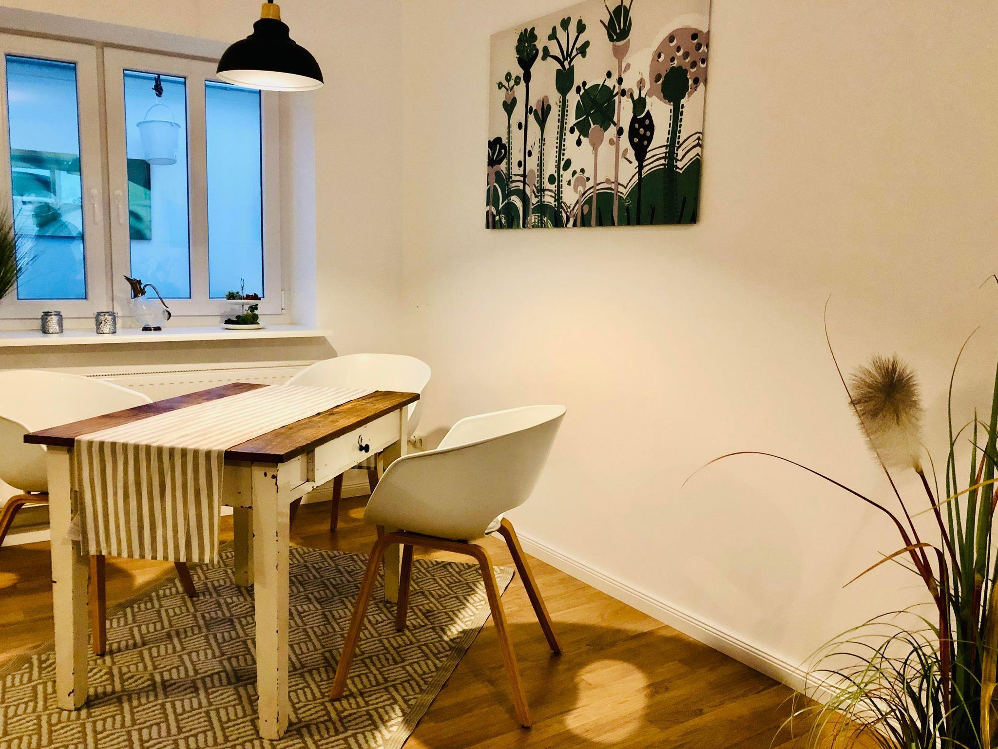 Die moderne Küche ist mit allem ausgestattet, was man so braucht. Vom Essplatz aus hat man einen schönen Blick in den Wintergarten. Das Wohnzimmer ist gemütlich eingerichtet mit Sessel und Sofa. Das gesamte Altstadthus ist mit einem Mix aus antiken und modernen Gegenständen eingerichtet.