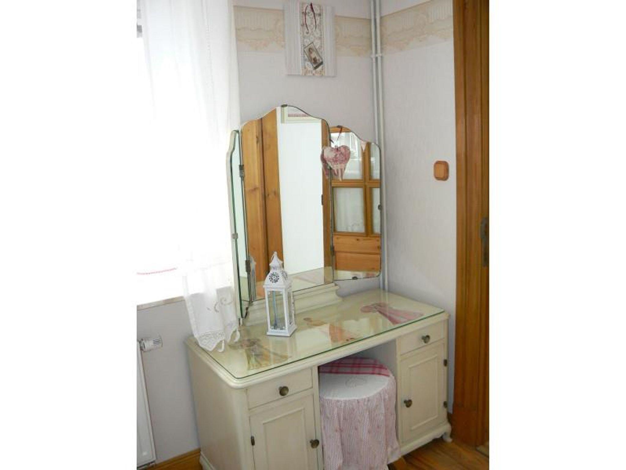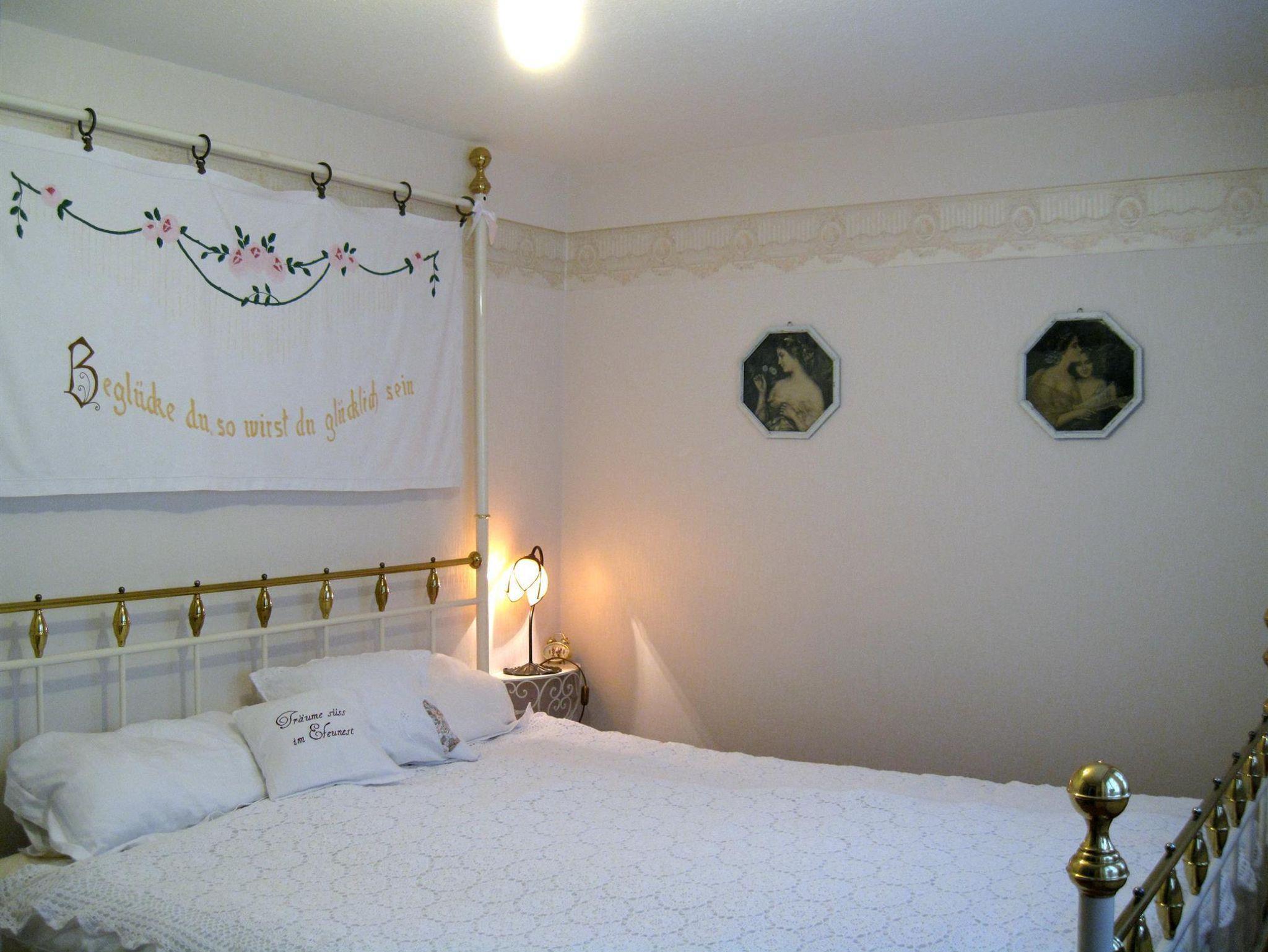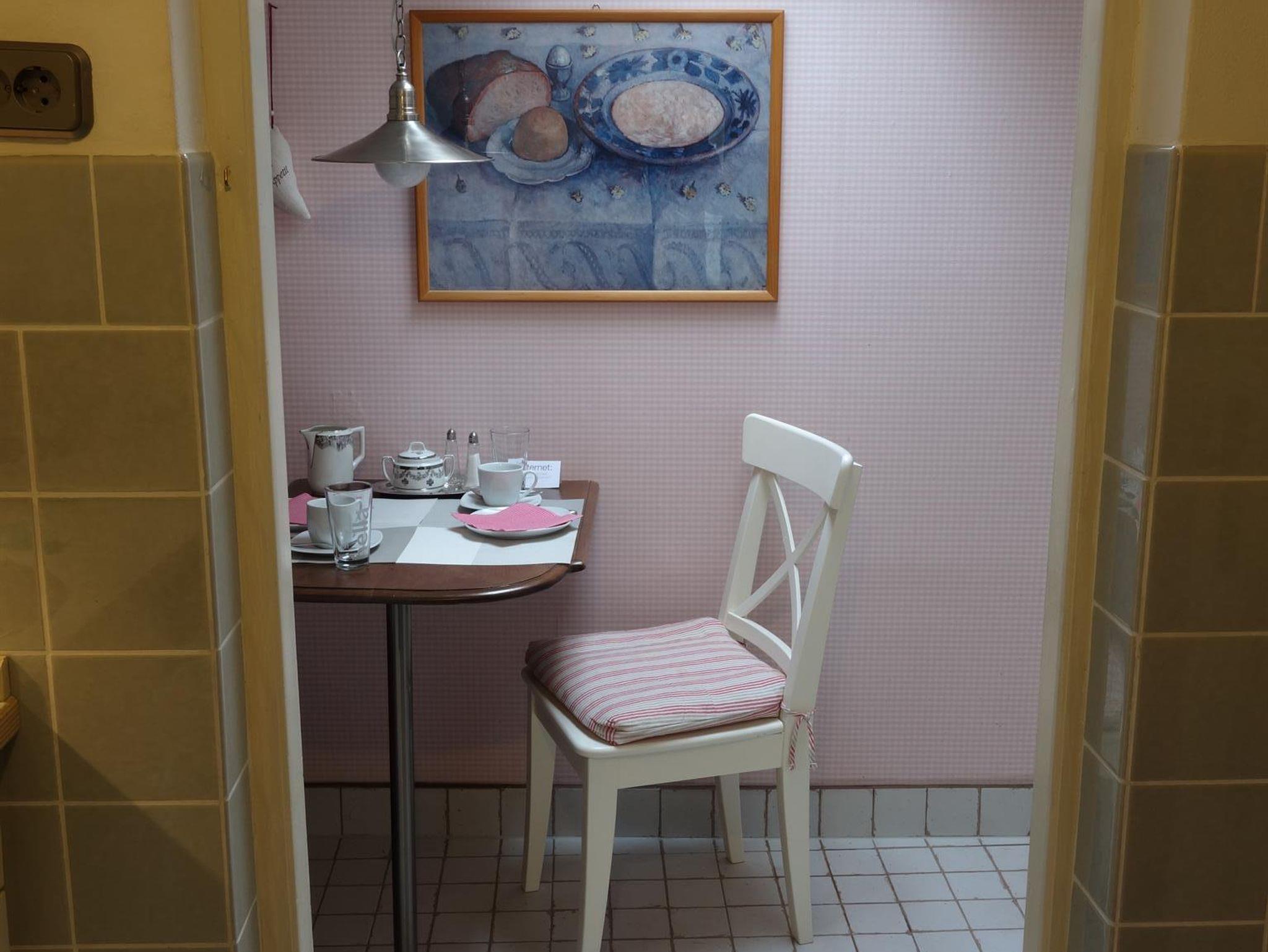 Den Charme des alten Hauses bewahrend, sind die zwei Zimmer auf zwei Etagen (ca. 40 qm²) mit vielen ausgefallenen antiken Stücken und Accessoires möbliert.