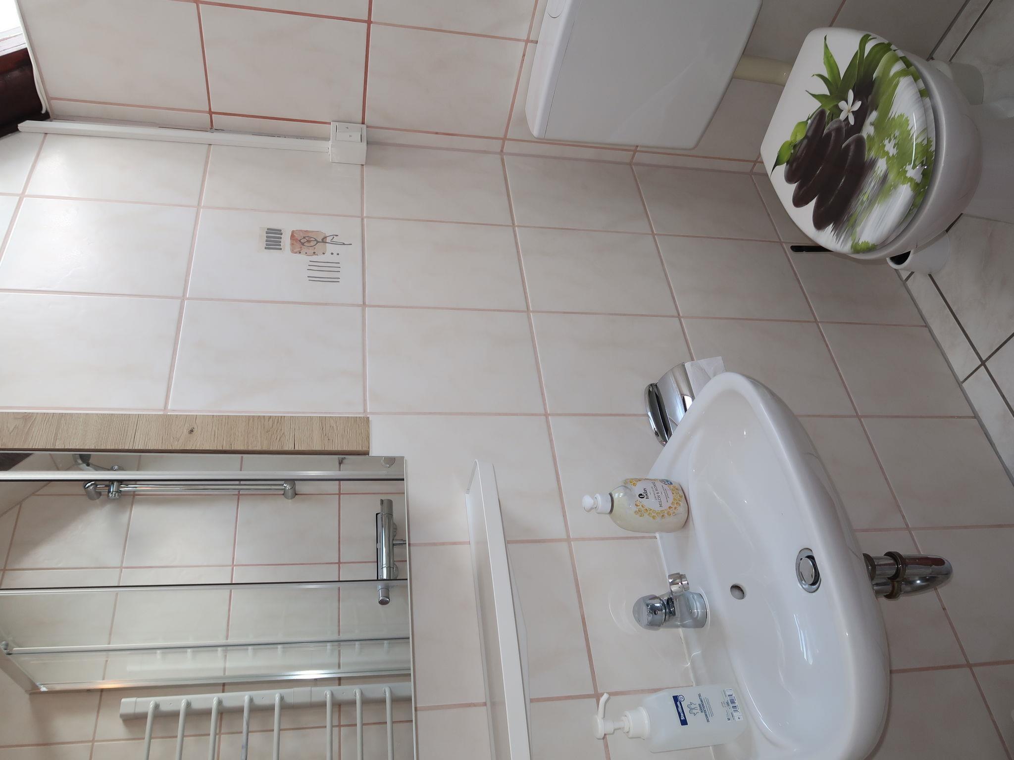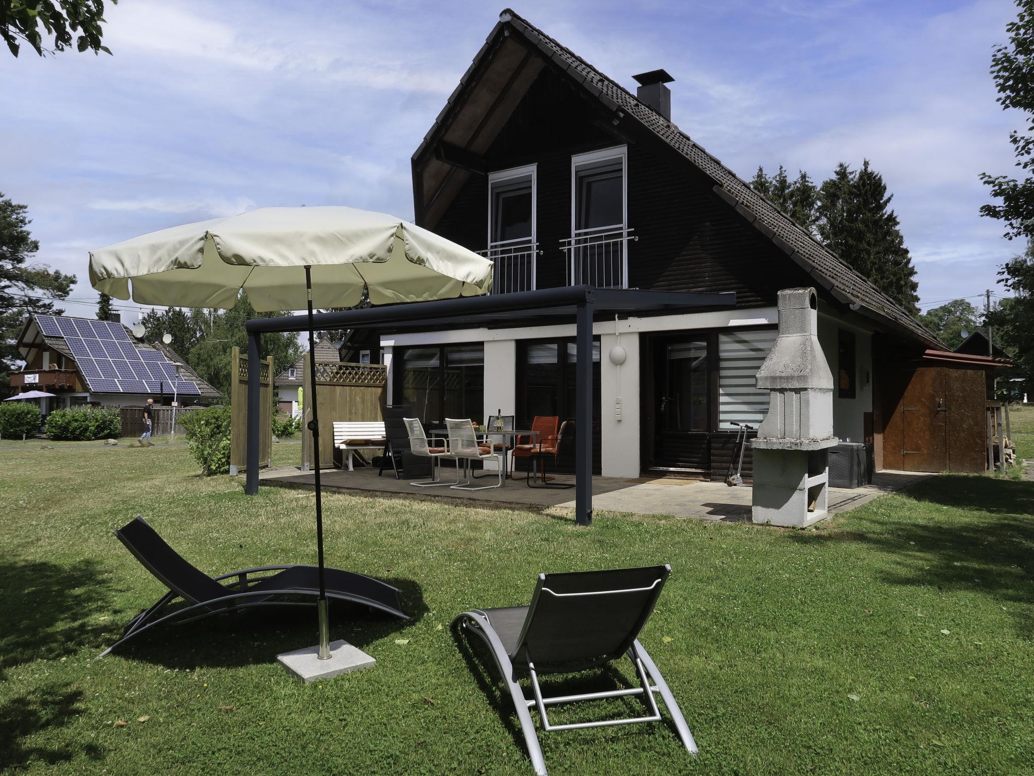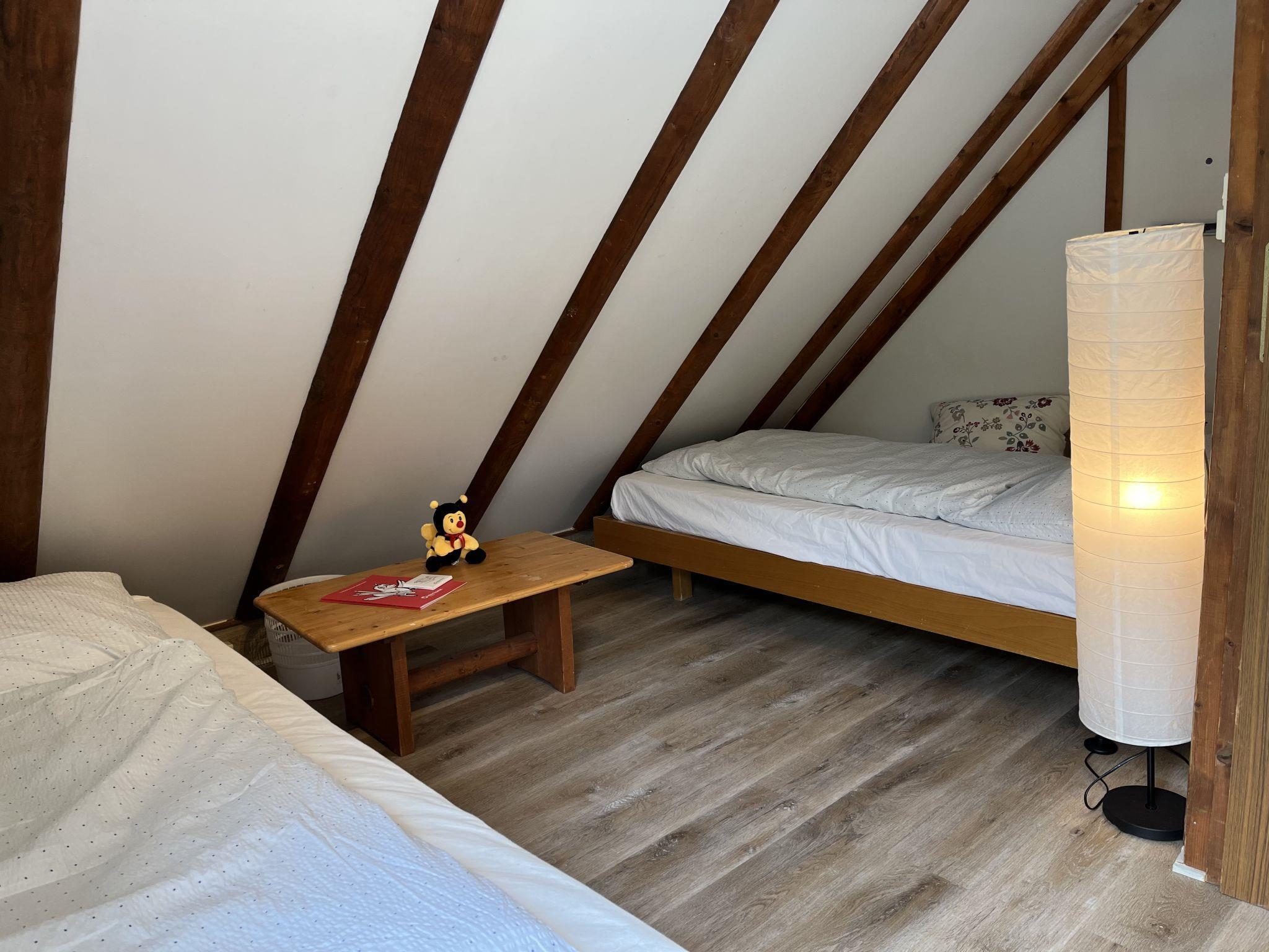 4-room house 75 m2 on 2 levels. Partly renovated in 2022, beautiful and cosy furnishings: living/dining room with Scandinavian wood stove and satellite TV (flat screen), radio and CD-player. Exit to the terrace. 1 double bedroom with separate WC. Small kitchen (oven, dishwasher, 4 ceramic glass hob hotplates, toaster, kettle, microwave, freezer, electric coffee machine). Shower/WC. Upper floor: 1 double bedroom. 1 room with 2 beds. Electric heating. Large terrace roofed, lawn. Terrace furniture, barbecue, deck chairs (3). Facilities: Internet (WiFi, free). Parking at the house. E-charging station. Please note: non-smoking house. Maximum 2 pets/ dogs allowed. Smoke alarm. The double room with separate toilet, kitchenette and shower/toilet can be reached via 4 steps from the ground floor. High-speed internet with landline connection, ideal for workation.