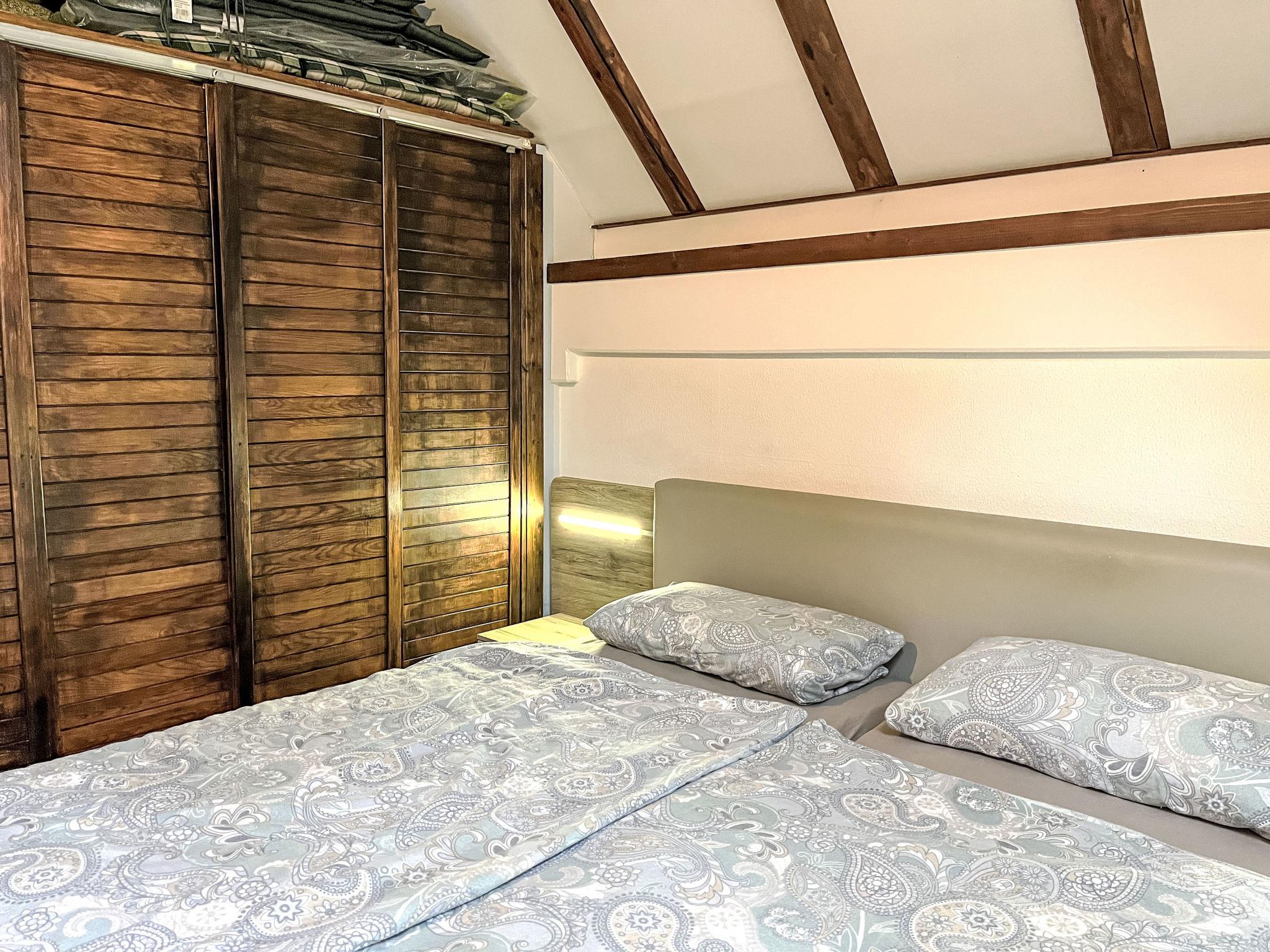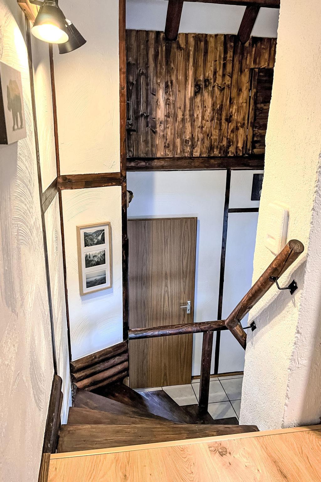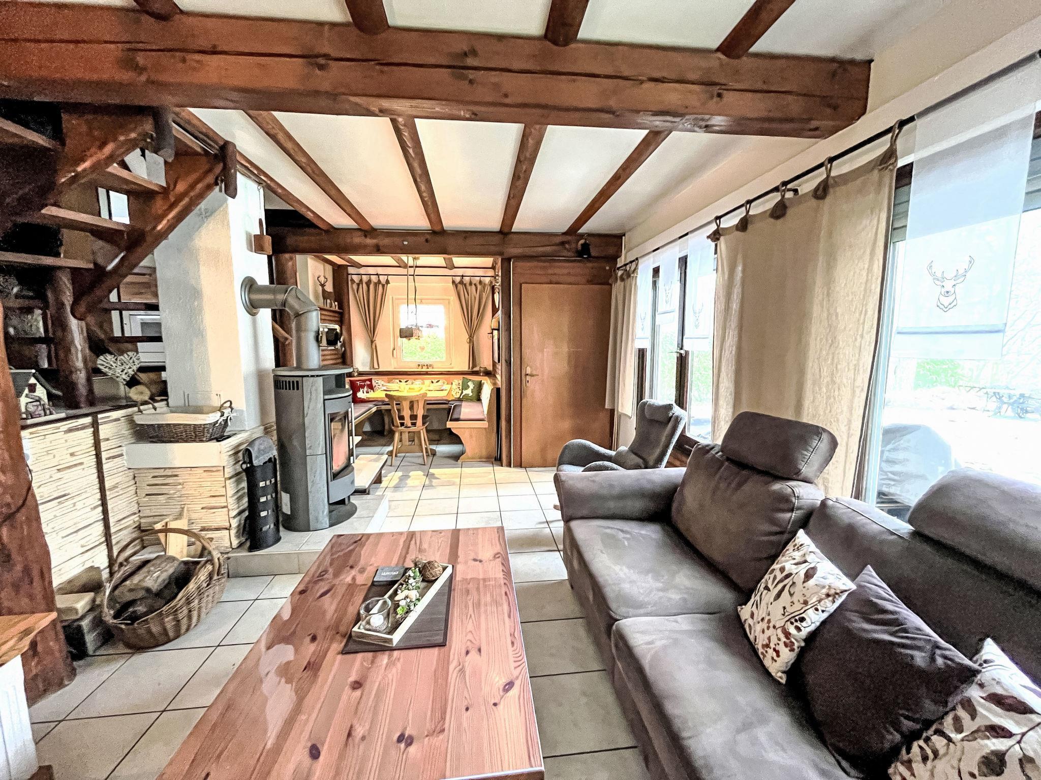 "Tim´s Alm am Silbersee", 4-room house 80 m2 on 2 levels. Bright, renovated in 2024, tasteful and cosy furnishings: living/dining room with Scandinavian wood stove, dining nook and satellite TV (flat screen), radio and CD-player. Exit to the terrace. 1 room with 1 double bed (2 x 90 cm, length 200 cm), shower/WC. Kitchen (oven, 4 ceramic glass hob hotplates, toaster, kettle, microwave, freezer, electric coffee machine). Shower/WC. Upper floor: 1 room with 1 double bed. Exit to the balcony. 1 room with sloping ceilings with 2 beds (90 cm, length 200 cm). Exit to the balcony. Large terrace roofed, lawn. Terrace furniture, barbecue. Facilities: children's high chair, logs (extra). Internet (WiFi). Parking at the house. Please note: non-smoking house. Maximum 4 pets/ dogs allowed. Smoke alarm, fire extinguisher. The neighborhood is sensitive to noise. The garden is completely fenced. Only dogs allowed.