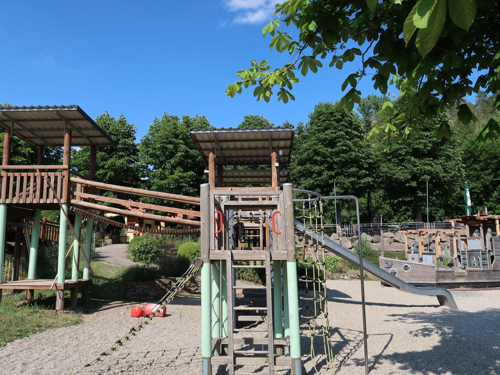 Child friendly resort "Ferienwohnpark Silbersee". Outside the resort, 1 km from the centre of Frielendorf, in a quiet position, 300 m from the lake. In the complex: reception, restaurant, sauna, solarium, bowling (all extra). Breakfast and half board possible (extra). Supermarket 2 km, restaurant 250 m, bus stop 400 m, railway station 8 km, sandy beach 300 m. Minigolf 200 m, riding stable 5 km, walking paths from the house 50 m, children's playground 180 m, fishing possibilities 300 m. Well-known lakes can easily be reached: Silbersee 50 m, Edersee 50 km. Summer toboggan run 400m (extra). The amusement park is located above the Silbersee (natural lake, swimming opportunity, spa with swimming pool) and has green spaces, indoor rollerblades, beach volleyball courts, a mini golf, a football field, a barbecue area and playgrounds. For children: the Happy-Kids-Club (6j / week in July / August, 6-12 years, free) and the rooftop playground "Frielo-Land" (extra).