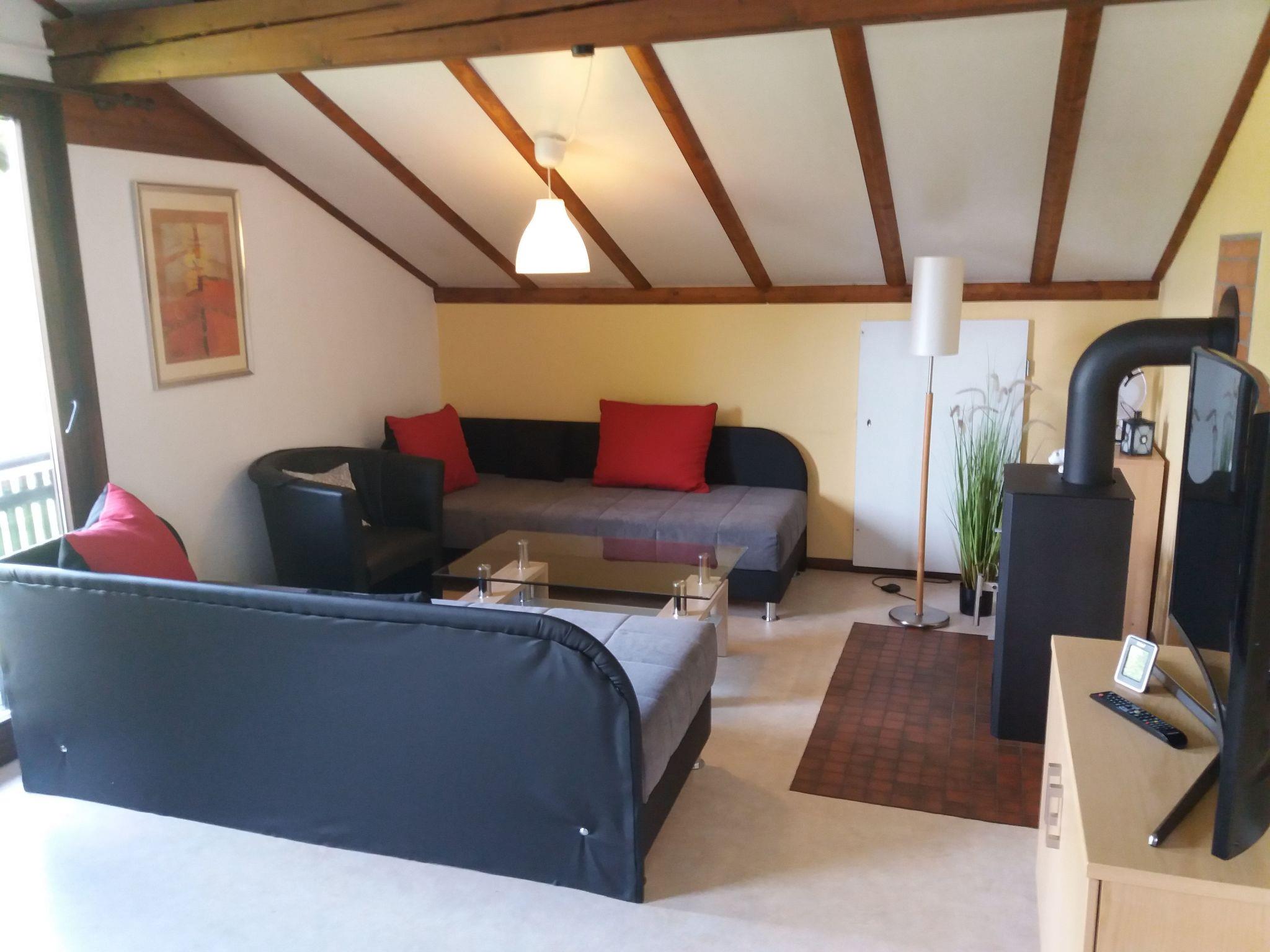 The interior of our holiday home, consisting of three self-contained flats, is equipped with all the comforts you need for a relaxing stay. On the ground floor you will find the large, barrier-free Wolf flat with air conditioning and the cosy Geisslein flat. The upper floor houses the Rapunzel flat, which not only impresses with its cosiness, but also with two balconies. All flats offer WLAN, flat-screen TVs, CD and DVD players, wood-burning stoves and direct access to the terrace or balcony.