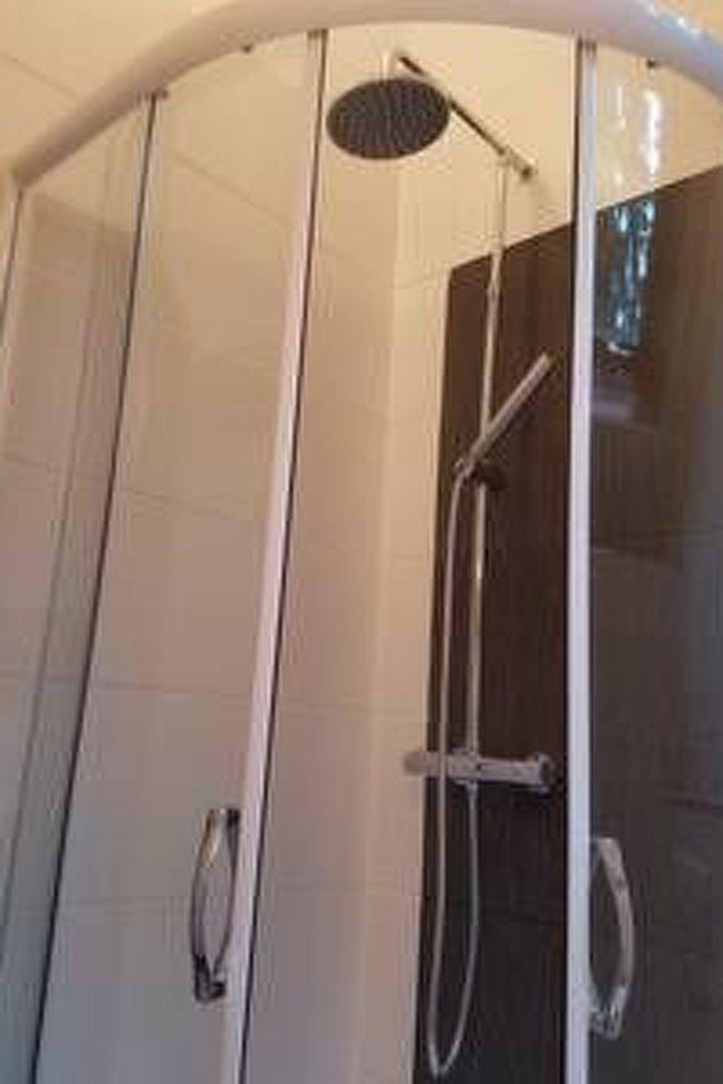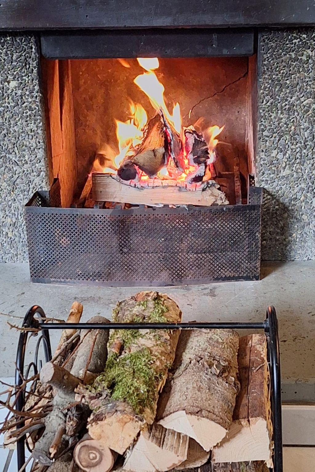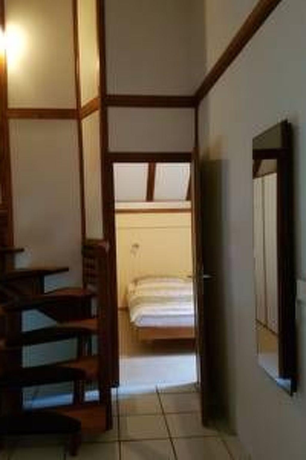 As you enter the holiday home, an entrance hall opens up into the open-plan living/dining area. Here, a comfortable seating area with table, a TV and a large, solid brick fireplace invite you to linger and relax. The adjoining cosy seating area promises convivial hours. A small staircase leads to the gallery with a fully equipped kitchenette, which leaves nothing to be desired, from microwave and coffee machine to toaster and crockery. The bathroom with shower, washbasin and WC is also located on this level, as is the first bedroom with a comfortable double bed and a separate toilet room.