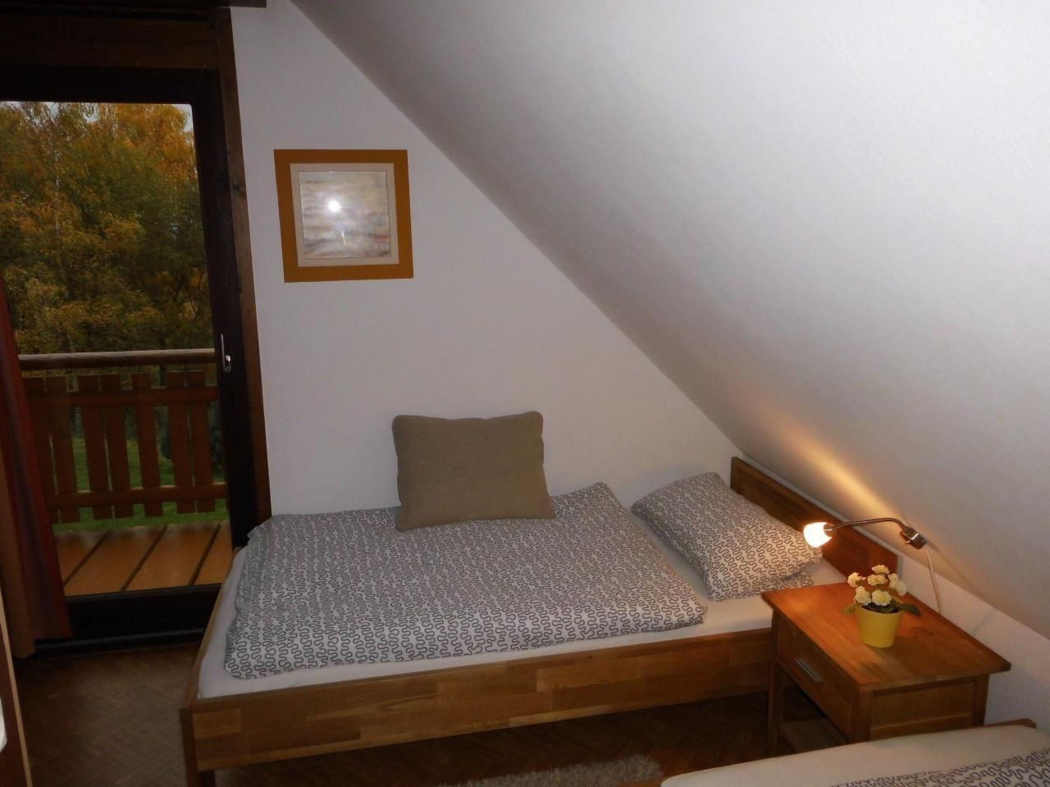 The outdoor area boasts an inviting terrace equipped with patio furniture, barbecue, parasol and sun loungers - the ideal place to unwind and spend time together outdoors. The rooms on the upper floor have access to a furnished balcony, which offers a picturesque view of the surrounding nature.