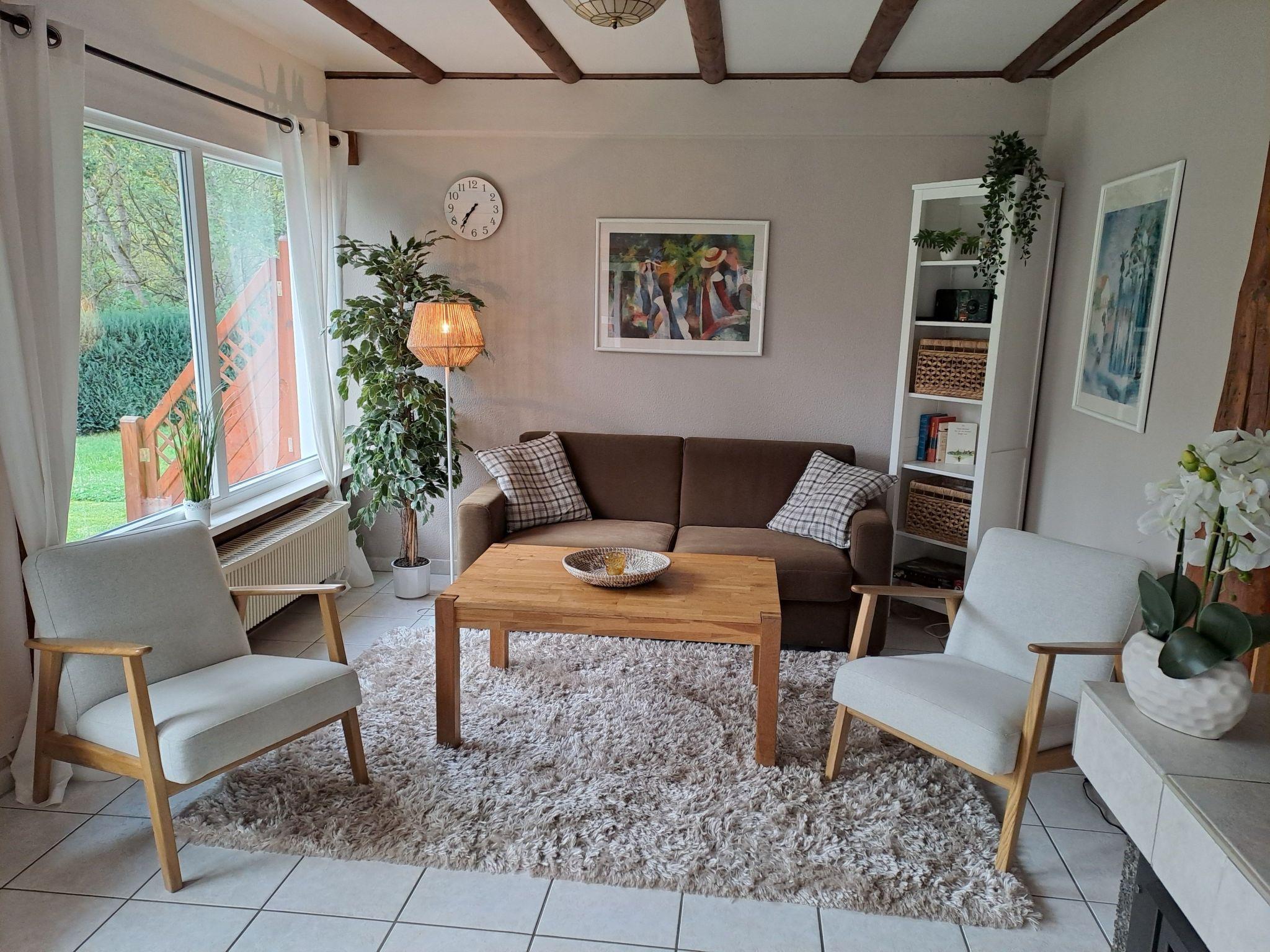 Inside, a wealth of amenities awaits you on approx. 75 m² spread over three levels. The entrance area with cloakroom and mirror leads you into the spacious living room, equipped with a flat-screen TV, internet radio and a wood-burning fireplace that promises cosy evenings. The adjoining, light-flooded dining area offers space for up to six people. The kitchen leaves nothing to be desired with a ceramic hob, oven, coffee machine and other modern appliances. A bright shower room with WC and a bedroom with double bed and separate WC complete the facilities on this living level.
