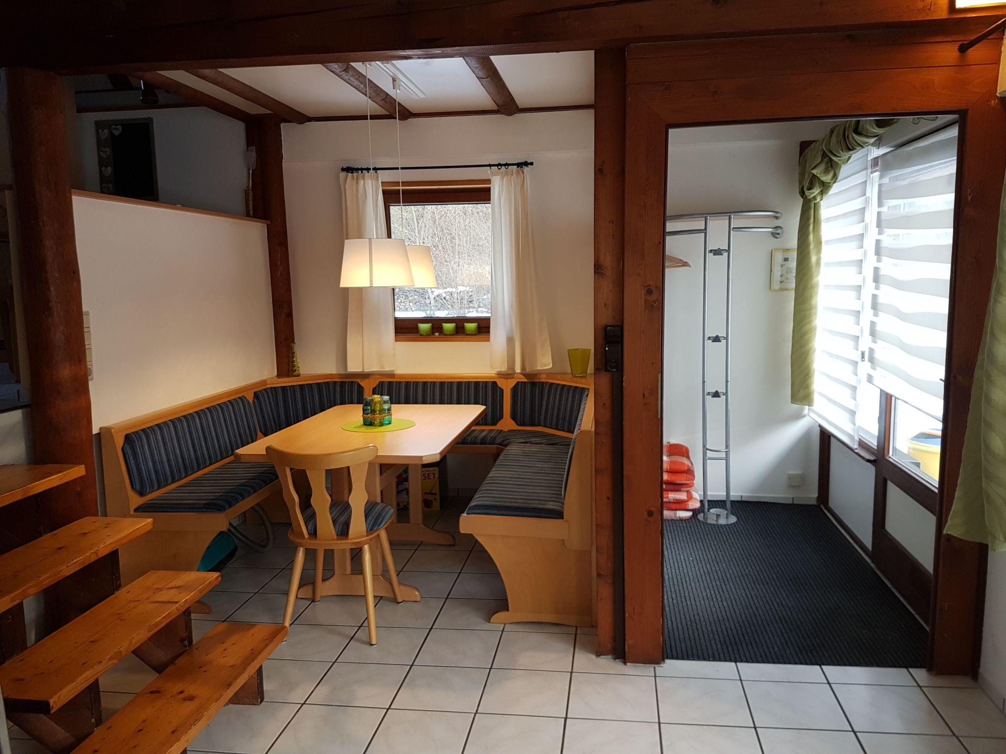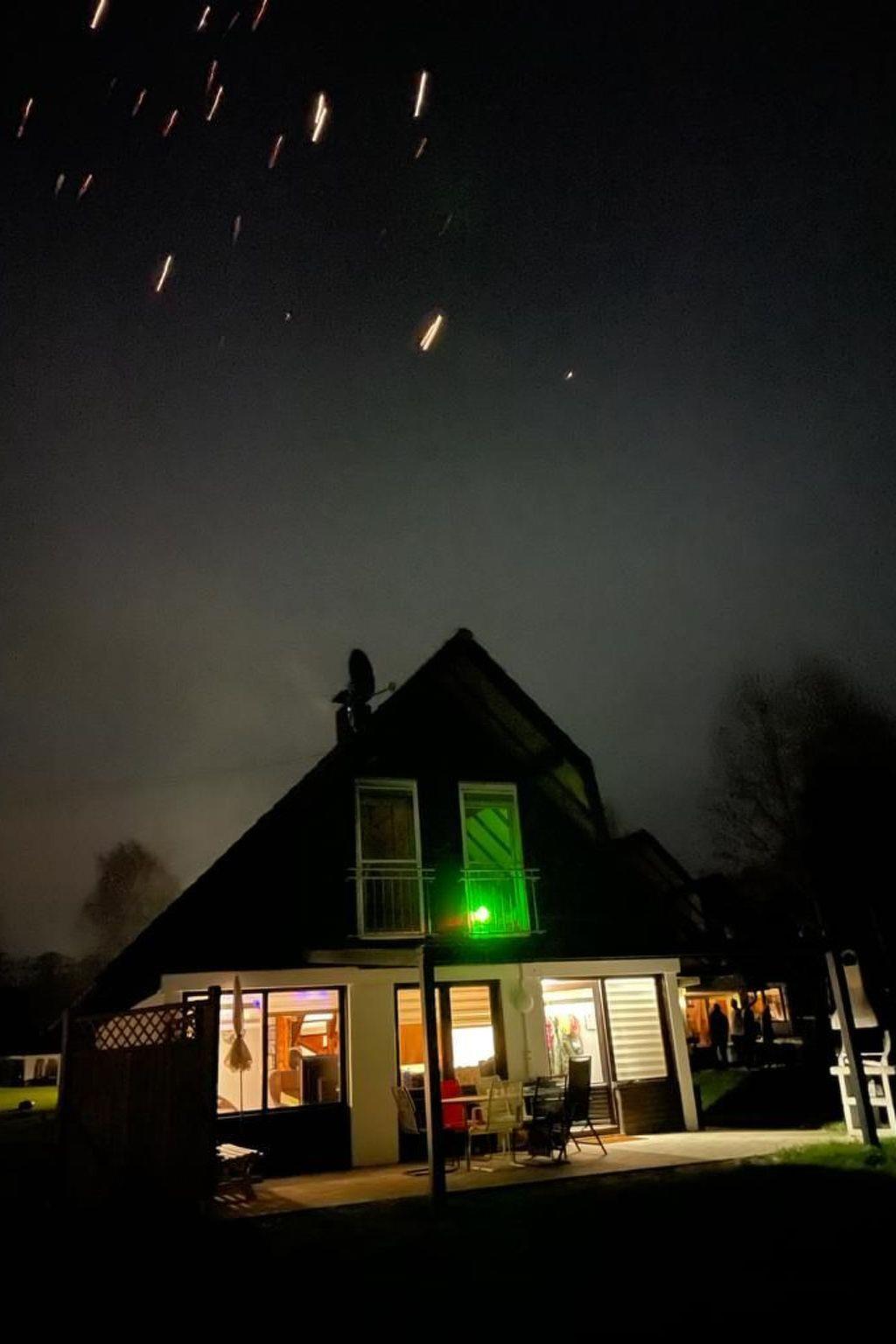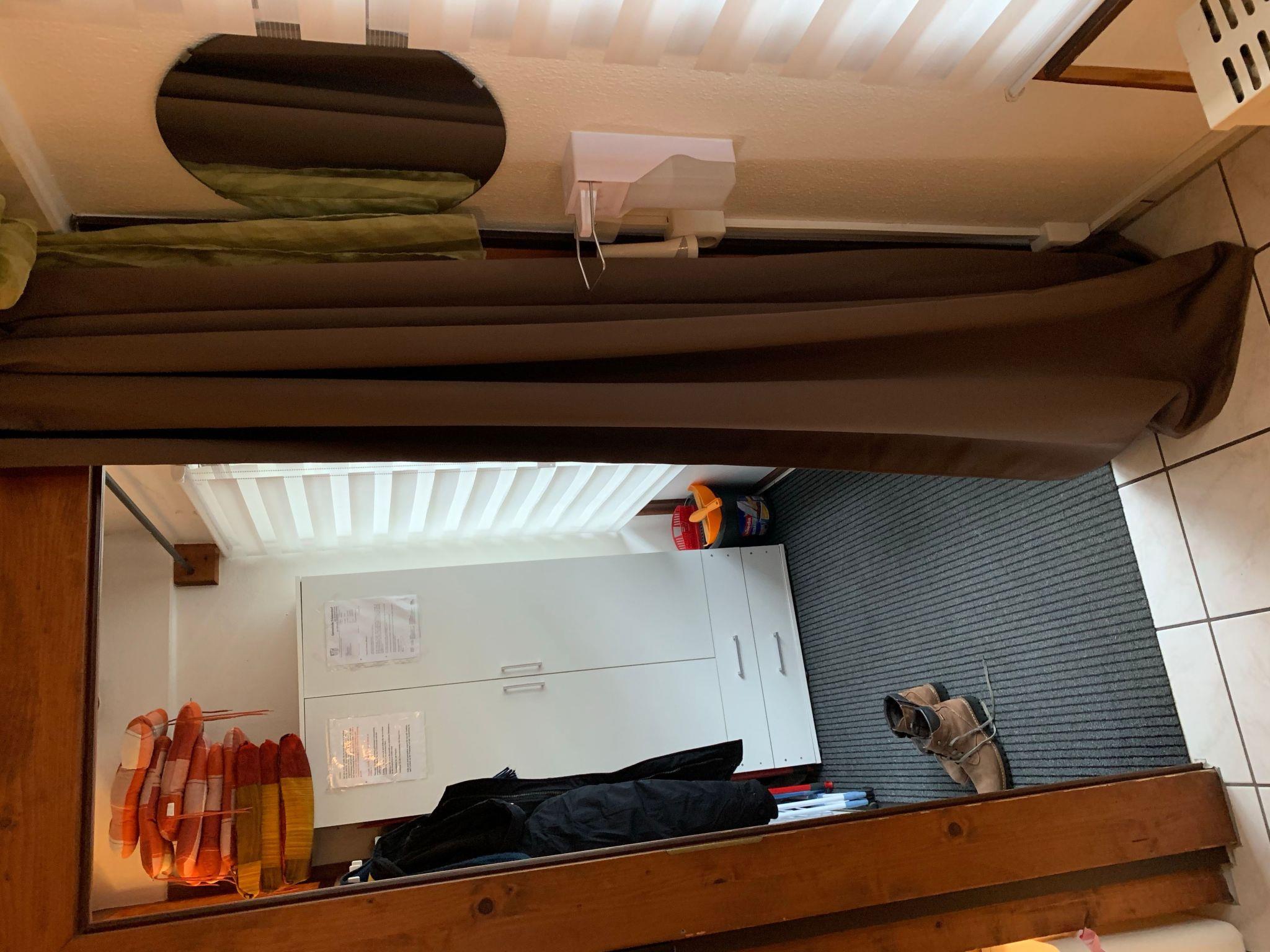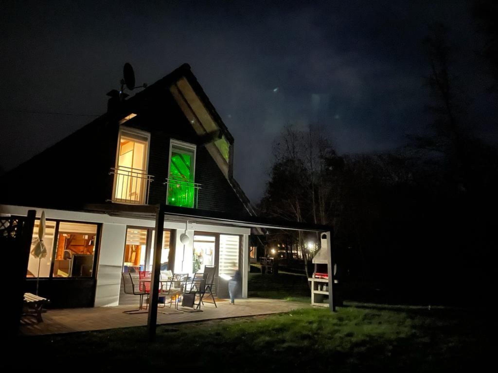 The approx. 75 m² house is spread over three levels and is ideal for a maximum of six people. You enter the open-plan living/dining area via a hallway, which has a sofa set, a coffee table, a flat screen with Sky TV (all packages), a music system with jack connection and Bluetooth for playing your mobile phone music, a fireplace and an adjoining cosy dining area. A small staircase leads to a gallery where you will find the fitted kitchen with an oven, an electric hob, a fridge, a microwave, a toaster, a kettle, a coffee machine and another small seating area. Next to this is a shower room with a shower, washbasin and toilet. There is also a bedroom on the same floor, which is furnished with a double bed (1.80 m wide) and from where you have direct access to an adjoining separate toilet room with washbasin and WC. A wooden staircase takes you to the top floor, where there are two further bedrooms. One has a double bed (1.80 m wide) and the other bedroom has two single beds (each 0.90 m wide) and its own washbasin. The house has heating, two fans and children's toys.