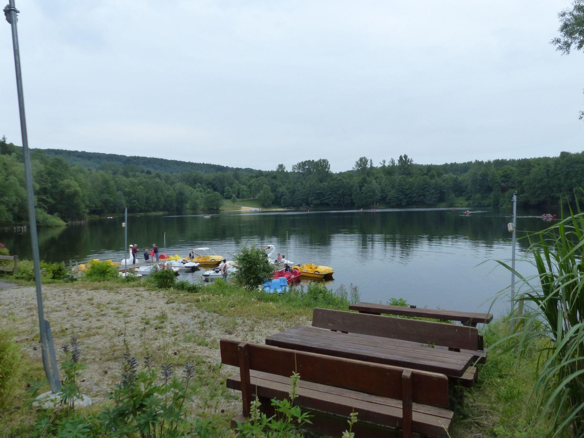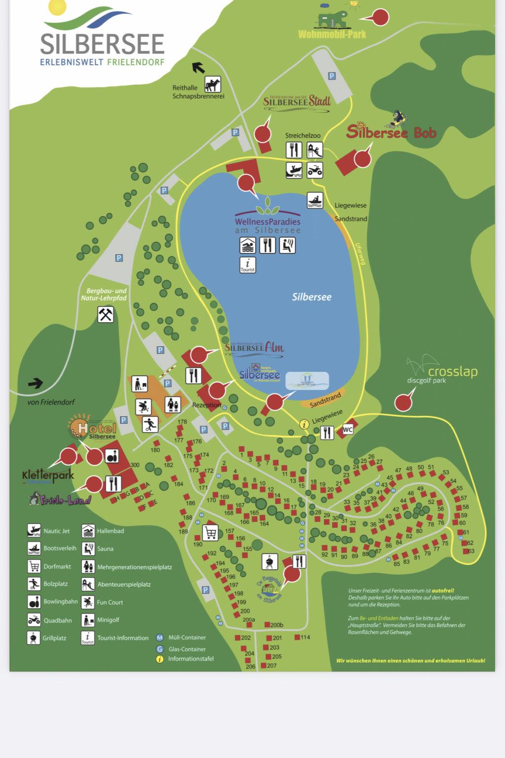 In the park and in the immediate vicinity there is a climbing park, a large indoor play paradise, a wellness centre with indoor pool, a sauna, a water slide, a miniature railway, an all-weather toboggan run, a petting zoo, archery facilities, a minigolf course, a skating and bowling alley, football, tennis and basketball courts, as well as various adventure playgrounds. The nearest grocery shop is approx. 400 m away and cafés and restaurants are approx. 600 m away.