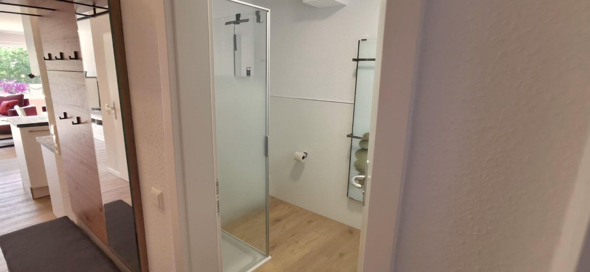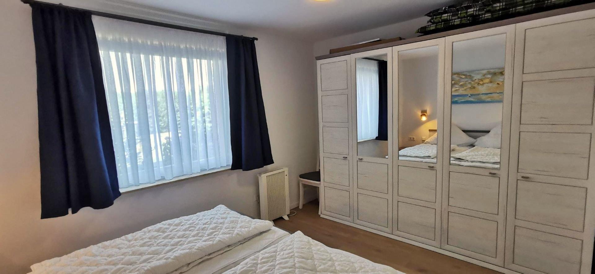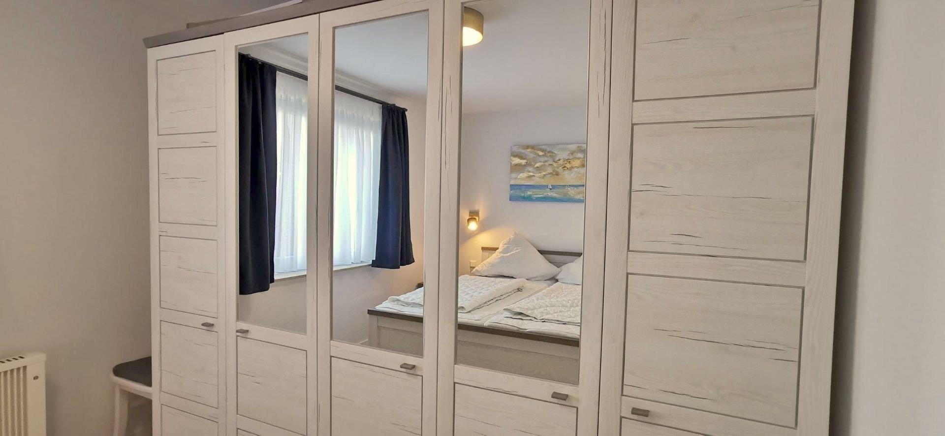 --2023 sanierte Ferienwohnung im Erdgeschoss--Die Ferienwohnung im Erdgeschoss wurde komplett renoviert und bietet nun modernen Komfort und eine gemütliche Atmosphäre. Im Schlafzimmer, welches mit einem Doppelbett ausgestattet ist findet sich im großen Kleiderschrank genügend Stauraum für Ihre Kleidung.Das Badezimmer verfügt über eine ebenerdige Dusche. Die schnellen Infrarotheizungen sorgen für eine angenehme Wärme und ein schnelles Aufheizen des Raumes. Die neue Küche ist mit einer Spülmaschine ausgestattet, die das Abwaschen erleichtert und Zeit spart. Auf der gemütlichen Terrasse können Sie die Sonne genießen und entspannen. Gartenmöbel und ein Grill stehen zur Verfügung, um das Essen im Freien zu genießen. Die Ferienwohnung im Erdgeschoss ist der perfekte Ort, um einen erholsamen Urlaub zu verbringen.