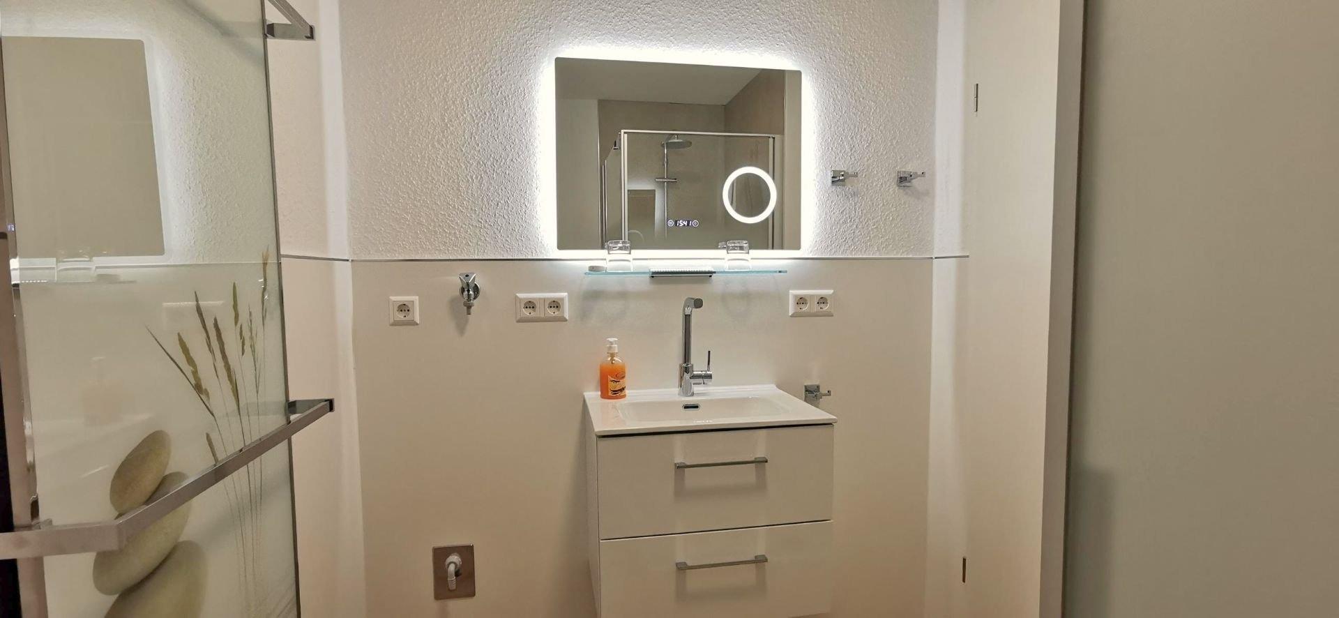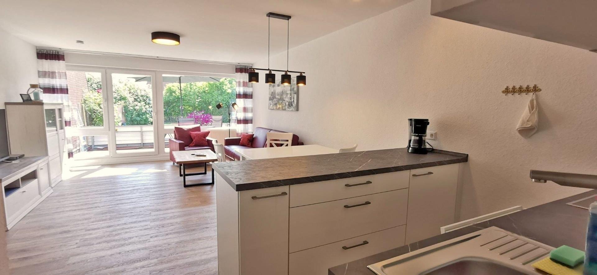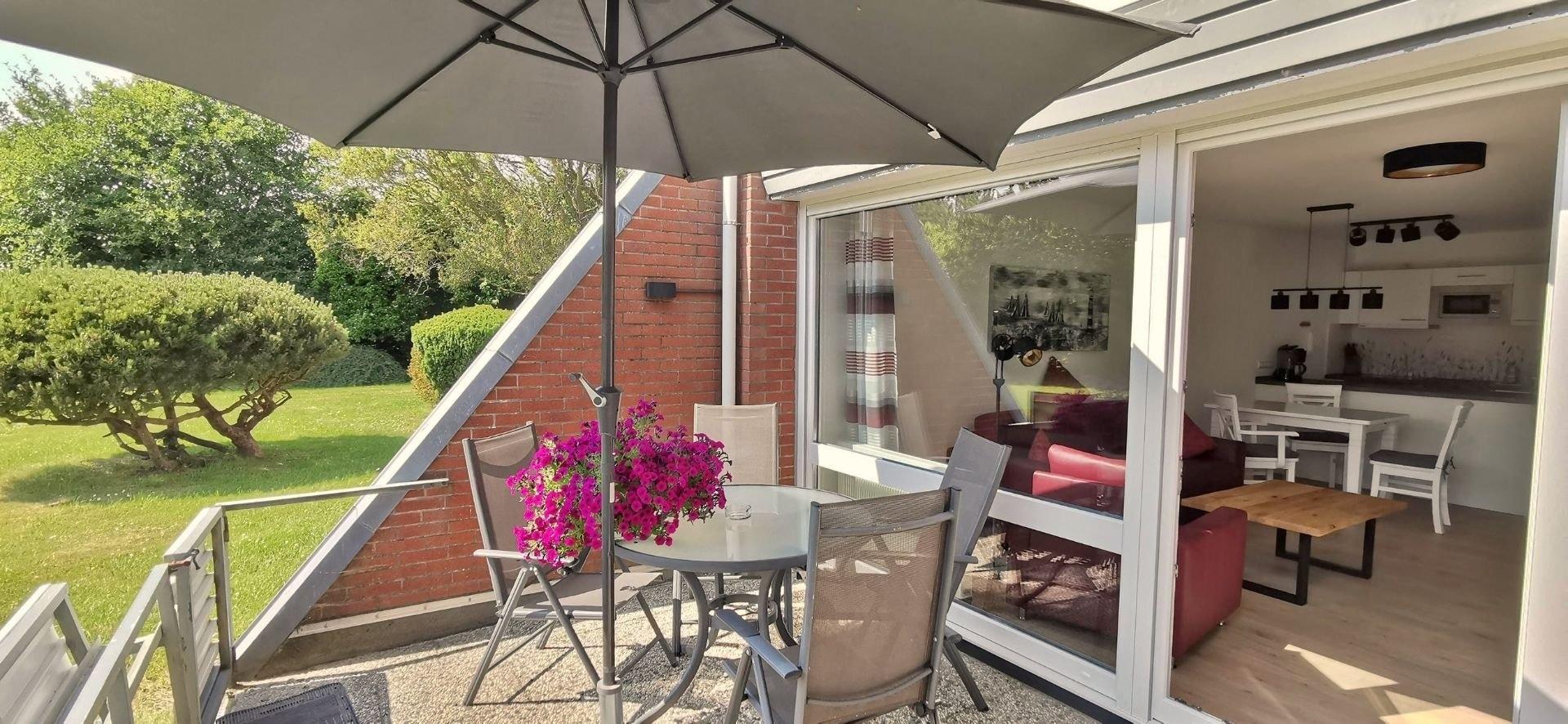 --2023 sanierte Ferienwohnung im Erdgeschoss--Die Ferienwohnung im Erdgeschoss wurde komplett renoviert und bietet nun modernen Komfort und eine gemütliche Atmosphäre. Im Schlafzimmer, welches mit einem Doppelbett ausgestattet ist findet sich im großen Kleiderschrank genügend Stauraum für Ihre Kleidung.Das Badezimmer verfügt über eine ebenerdige Dusche. Die schnellen Infrarotheizungen sorgen für eine angenehme Wärme und ein schnelles Aufheizen des Raumes. Die neue Küche ist mit einer Spülmaschine ausgestattet, die das Abwaschen erleichtert und Zeit spart. Auf der gemütlichen Terrasse können Sie die Sonne genießen und entspannen. Gartenmöbel und ein Grill stehen zur Verfügung, um das Essen im Freien zu genießen. Die Ferienwohnung im Erdgeschoss ist der perfekte Ort, um einen erholsamen Urlaub zu verbringen.
