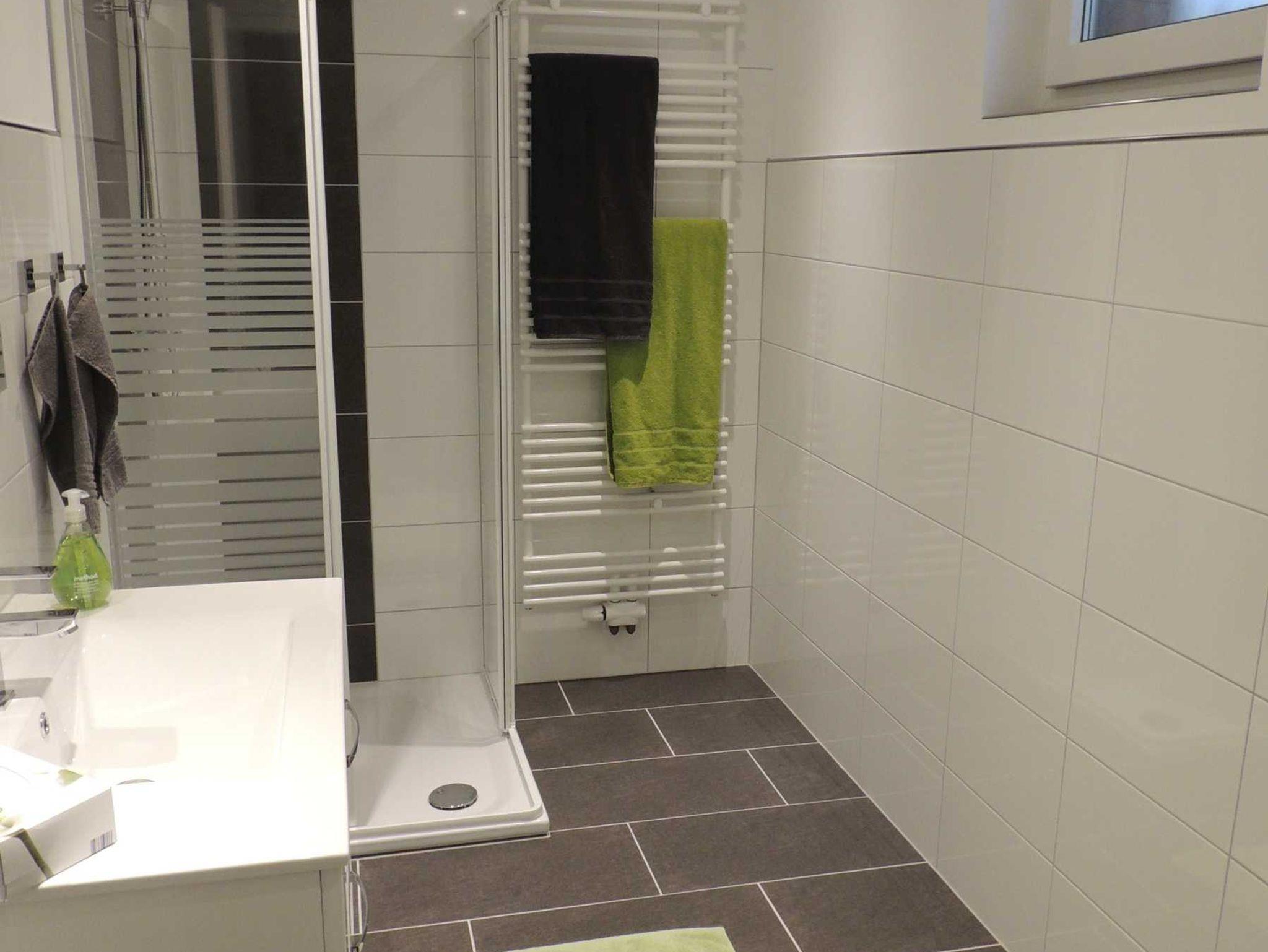 Ein modernes Duschbad mit WC vervollständigt die Wohnung.