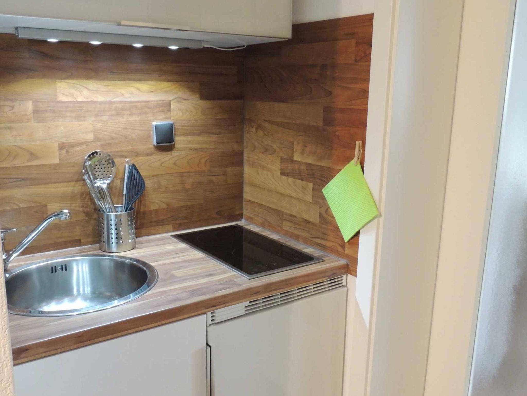 Des Weiteren gibt es eine kleine Pantryküche mit 2 Platten Ceranfeld, Spüle, Kühlschrank, Senseo-Kaffeemaschine, Toaster, Wasserkocher und Mikrowelle mit Backfunktion.