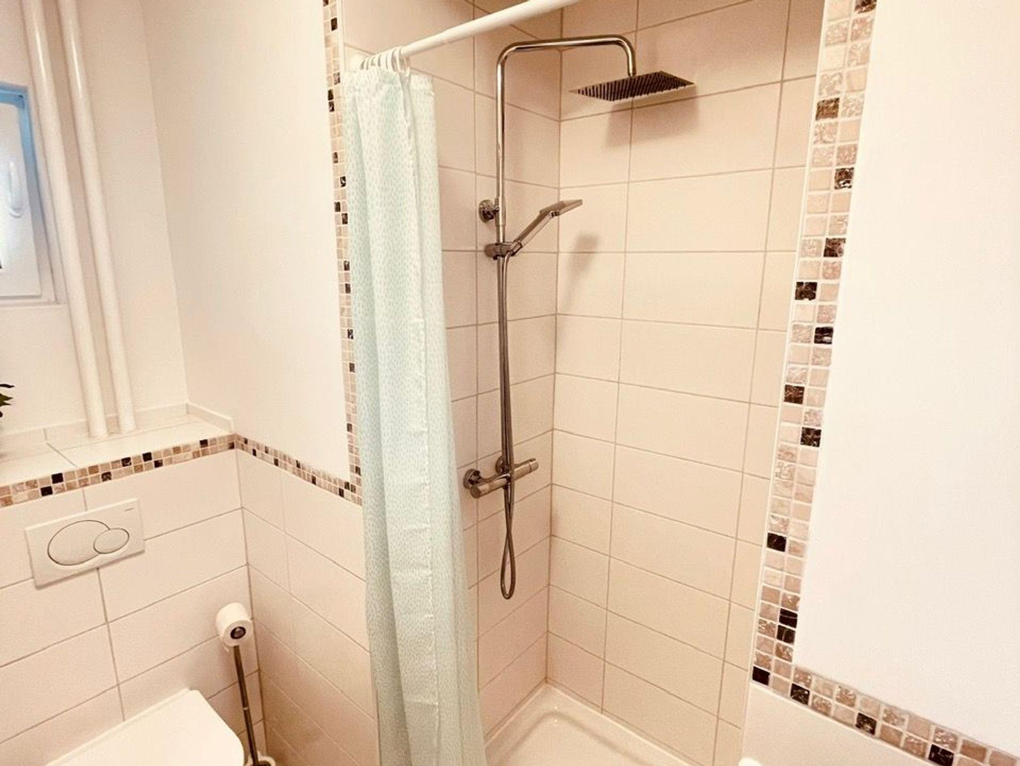 Der Wohnküche schließt sich ein kleines, aber feines Bad mit WC, Waschbecken und Dusche an. Über einen kleinen Flur gelangt man zu den beiden Schlafzimmern mit 160er bzw. 180er Ehebetten. Eines der beiden Zimmer hat zusätzlich einen begehbaren Kleiderschrank.