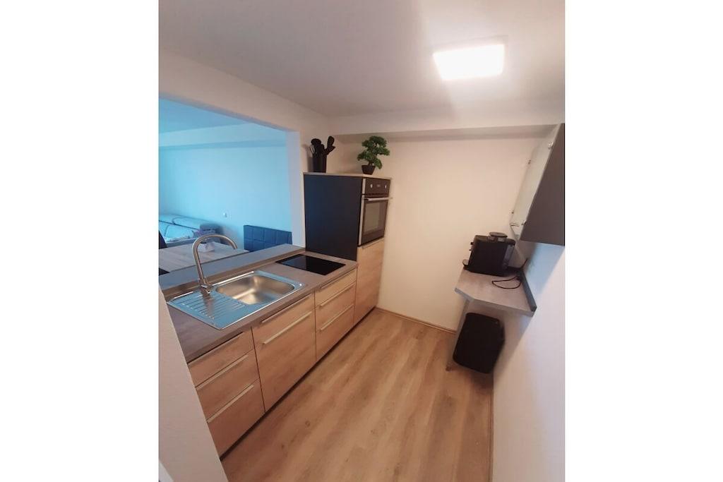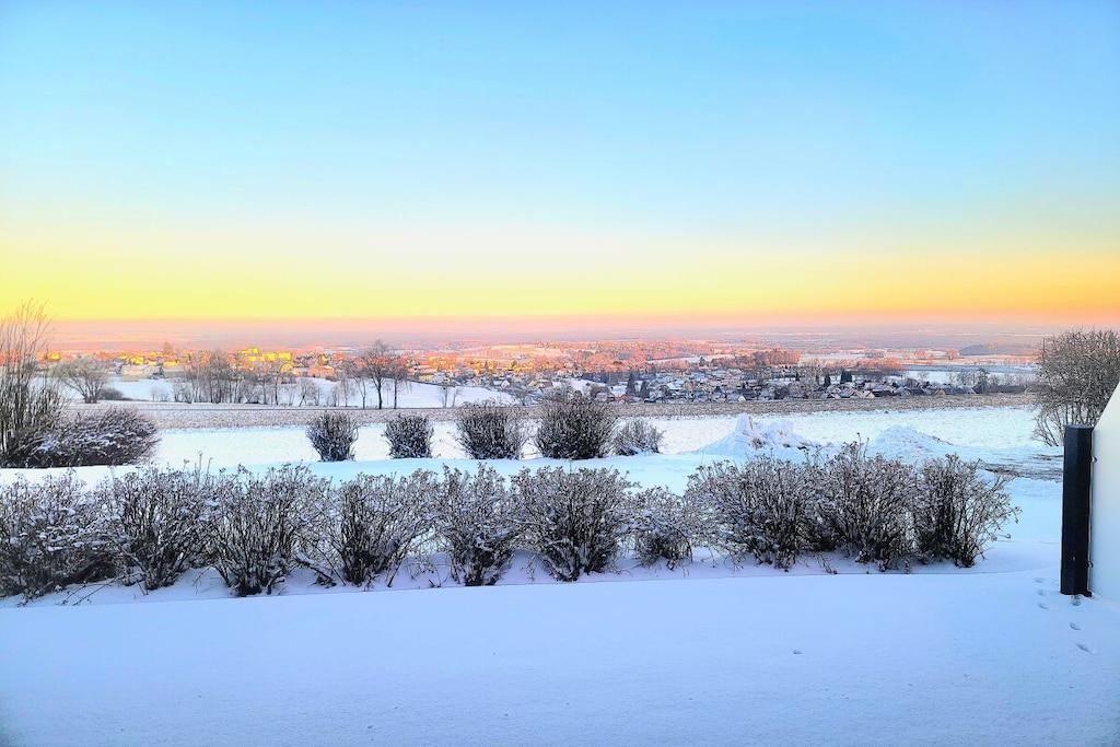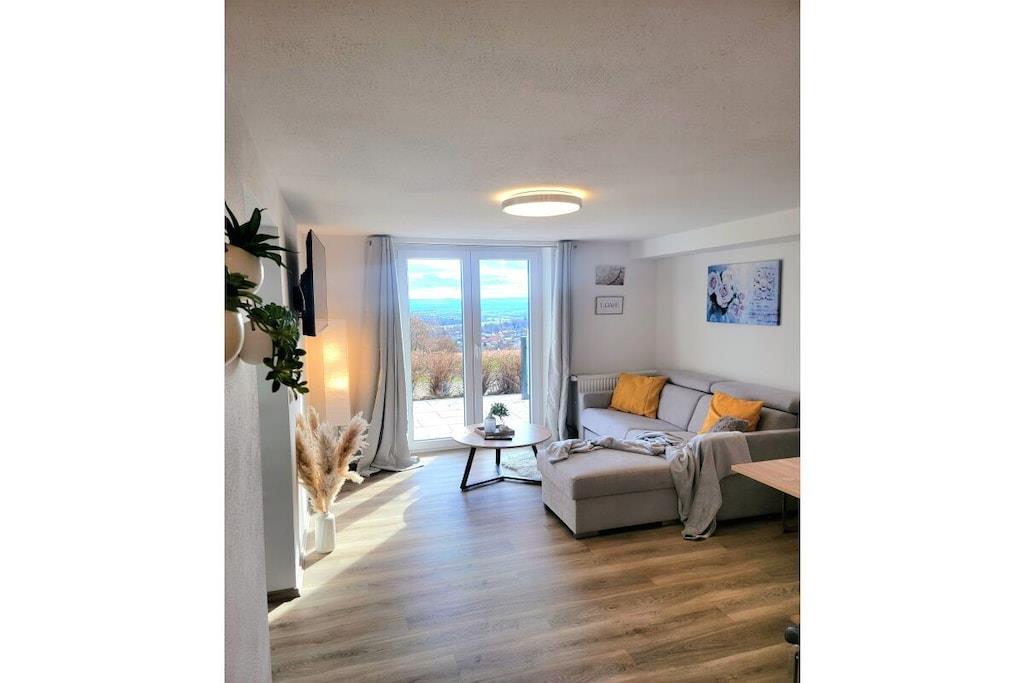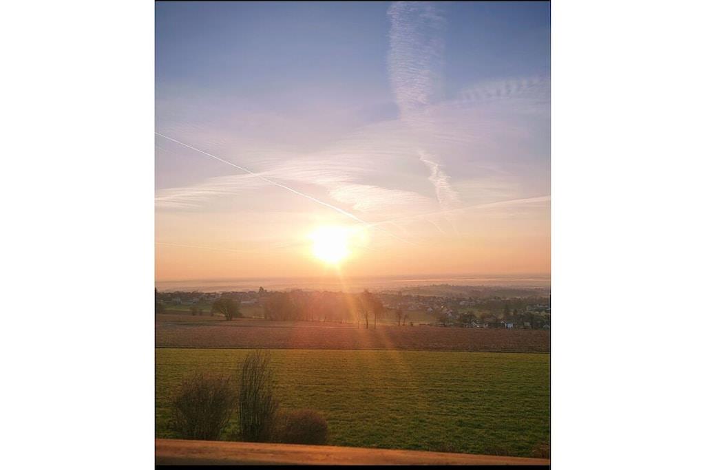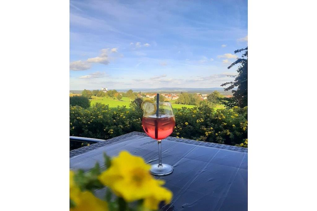 På et af de smukkeste steder i det nordlige Oberpfalz, kun 500 meter fra landsbyens centrum, ligger vores hus lige ved kanten af skoven. Med panoramaudsigt, der strækker sig over 50 km over hele Stiftland-regionen, kan du nyde den rolige atmosfære i vores hus. Talrige cykel- og vandrestier inviterer dig til at tilbringe aktive timer i den smukke Steinwald-skov. Lejligheden Tillenblick er udstyret med den nyeste teknologi. Den har en åben, lys opholdsstue med panoramaudsigt. Det specialfremstillede køkken, komplet med en fuldautomatisk kaffemaskine, køleskab, ovn, induktionskogeplade og opvaskemaskine, lader intet tilbage at ønske. Det moderne, rummelige badeværelse har regnbruser, hårtørrer, sminkespejl og håndklæder. Solterrassen med udsigt over Stiftland-regionen inviterer dig til at slappe af. - Ankomst - Føl dig hjemme - Slap af