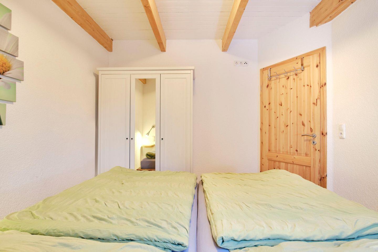 Das ebenerdige Domizil für bis zu 4 Personen verfügt über ein großes Wohn-/Esszimmer mit Kaminofen, 1 offene Küche, 2 Schlafräume, 1 Bad und einen eingezäunten Gartenbereich.