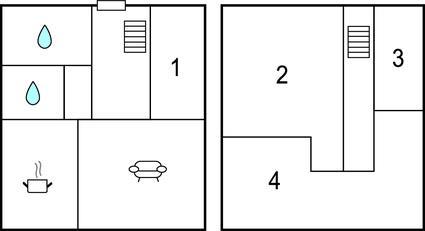 Badeværelse (nr. 1) - WC. Varmt og koldt vand. Bruser