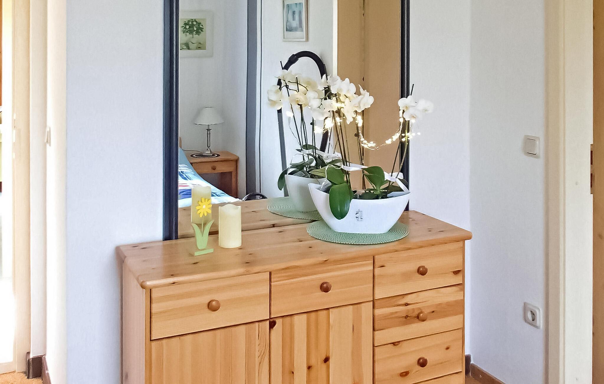 Sommerhuset er beliggende særskilt på ejerens 2000 kvm boligejendom ca 500 m fra stranden ved Bodstedter Bodden. Der er cirka 10 km til Østersøen (Ostseebad Zingst). På den velholdte og smukt anlagte ejendom er der flere siddepladser, liggestole, liggestole, opbevaring af cykler, en legeplads og en central grill- og bålplads. Feriehuset er udstyret med opholdsstue (polstrede møbler, fladskærms-tv, radio), 2 soveværelser (1 x dobbeltseng, 1 x 2 enkeltsenge, gennemgangsrum), køkken (elkomfur, mikroovn, køleskab m. fryserum, diverse køkkenmaskiner), 2 x bad/toilet, elvarme (natvarmer). En barneseng og høj stol kan stilles til rådighed for små børn. Den samlede pris inkluderer WiFi, sengelinned, vand, energi, slutrengøring og parkeringsplads. Håndklæder skal medbringes. Betales på stedet: spaskat. Fuhlendorf ligger syd for halvøen Fischland/Darß/Zingst på Bodstedter Bodden. Der er cirka 12 km til Østersøferiestedet Zingst, 30 km til klatreskoven, 40 km til Oceaneum I landsbyen: restaurant, indkøbsmuligheder, cykel- og bådudlejning, tennisbane, Zees bådture på Bodden. Tranetræk kan observeres om foråret og efteråret.