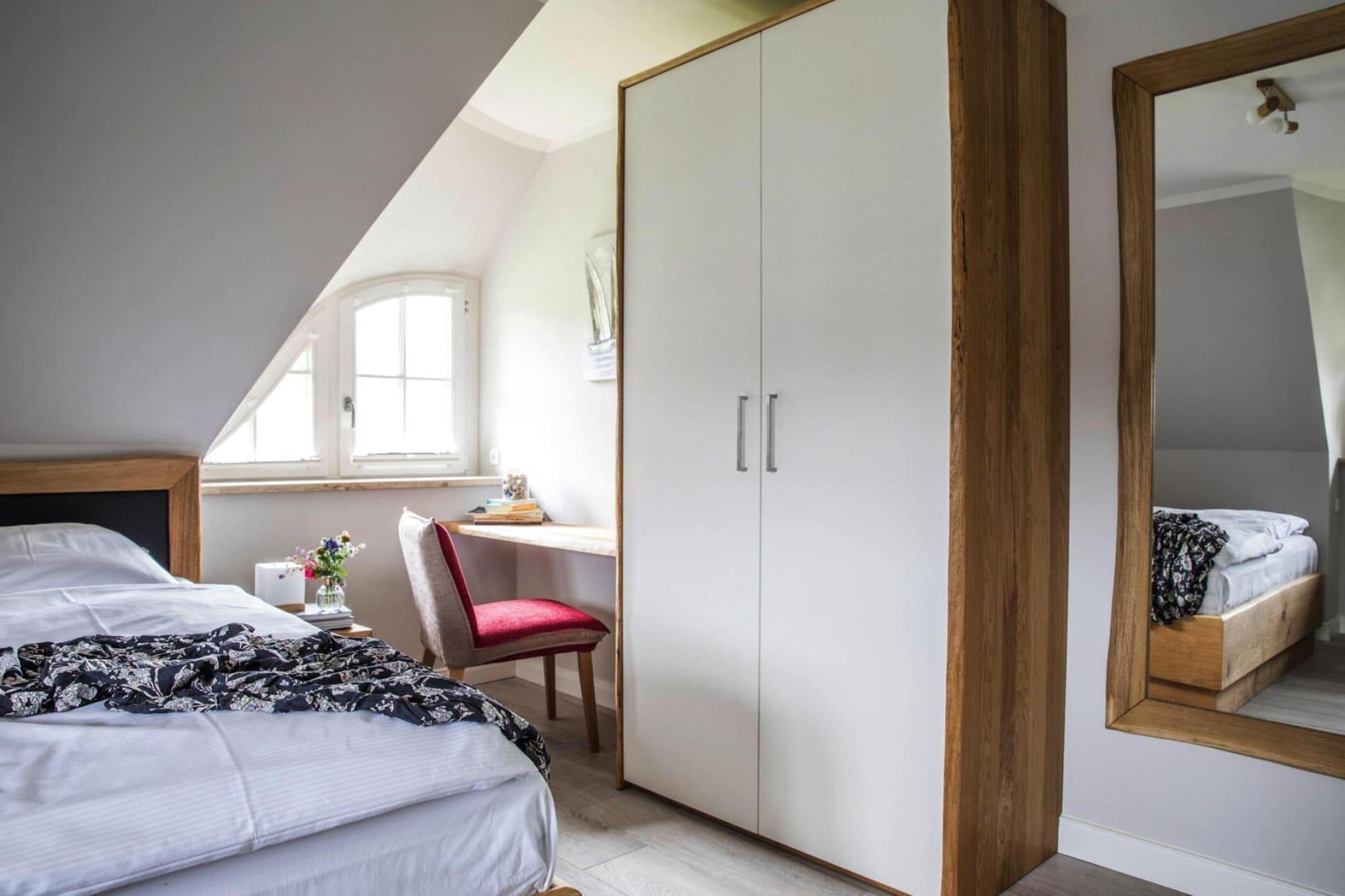 Ankomme og have det godt: Nyt stråtækt hus med idyllisk beliggenhed ved bugten, kun 170 meter fra vandet. Fra sauna og pejs til WiFi og satellit-tv med Sky til komfortable boxmadrasser, kan du nyde hvert sekund af din ferie her i en luksuriøs atmosfære. Eller du kan slappe af i fred i det naturlige badeområde ved Bodden-vandet eller tage en tur til den livlige Østersøstrand i Zingst, som ligger 17 kilometer væk. Rundt om bugten venter idylliske landsbyer og et unikt landskab på at blive opdaget af dig. Kommunerne Fuhlendorf og Bodstedt ligger meget idylliske på Boddens sydkyst. I årets varmere måneder sejler passagerskibe fra Bodstedt til Darß-halvøen til Born og videre gennem Neuendorfer Bülten til Ahrenshoop-Althagen. Detaljer: Forbrugsbaserede energiomkostninger, sengelinned, håndklæder, slutrengøring, WiFi Aktiviteter i nærheden: Bodstedt med sin traditionelle havn er kendt for Zeesen-bådene, der ligger der. Individuelle ejere af Zeesenbooten tilbyder en tur, og sådan en mulighed må du ikke gå glip af!Hvert år den første weekend i september siden 1965 den store Bodstedt Zeesenbootregatta Ikke egnet til personer med nedsat mobilitet
