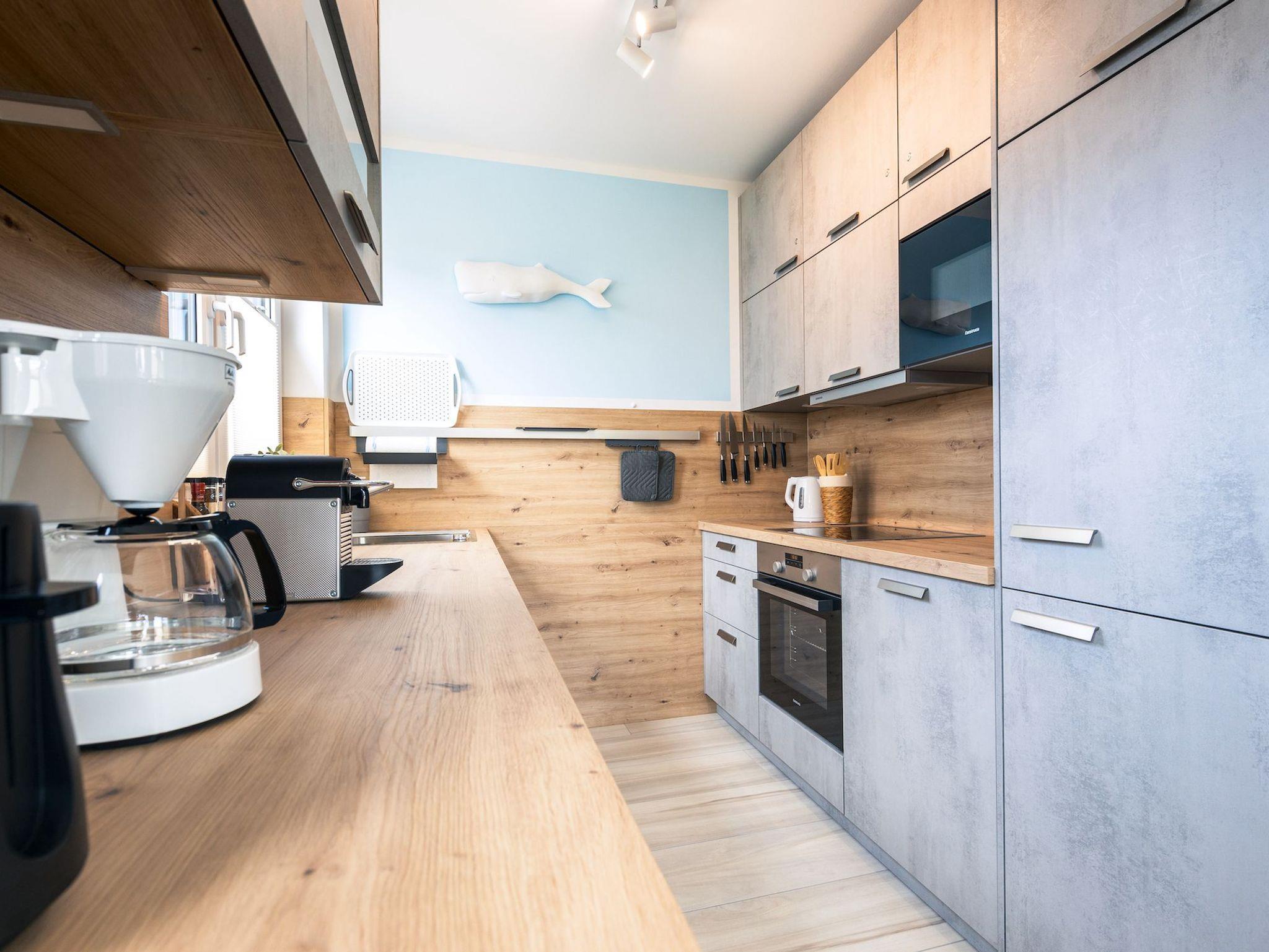 Im Erdgeschoss finden Sie einen kombinierten Wohn- und Essbereich, der geschmackvoll und komfortabel gestaltet ist. WLAN und Magenta TV mit Netflix sind in der Unterkunft kostenfrei vorhanden. Der angrenzende Küchenbereich lädt zum Verwöhnen ein, aufgrund der hochwertigen, vollständigen Ausstattung bleiben hier keine Wünsche offen. In dieser Etage steht ihnen auch ein Bad mit Fenster und Dusche zur Verfügung.