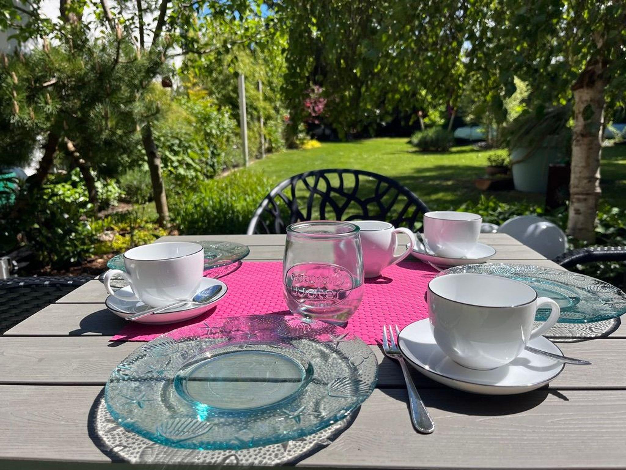 Im Erdgeschoss befindet sich der Wohnbereich mit Kaminofen, die Diele, die Küche und das Bad.