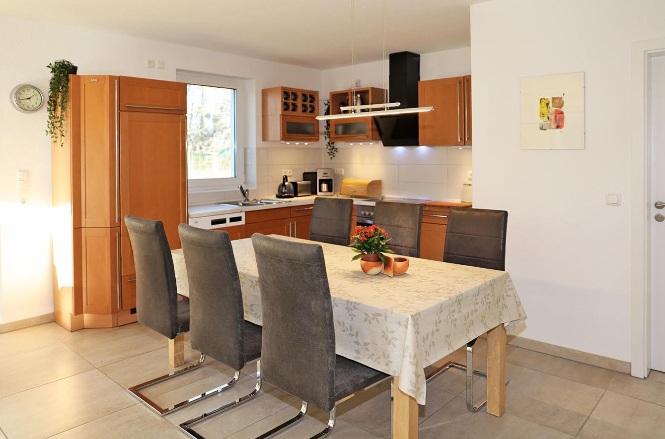 Fernseher mit Sat-Anschluss, DVD, Radio, Informationsmaterial sowie eine Auswahl von Büchern und Spielen haben wir für Sie zusammengestellt. In der Küche sind Herd, Backofen, Mikrowelle, Kühlschrank mit Gefrierfach, Dunstabzugshaube, Geschirrspüler und Geschirr für mindestens 8 Personen vorhanden.