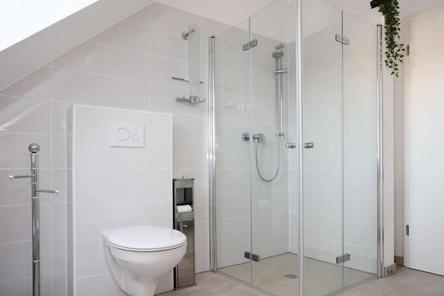 Weiter befindet sich oben ein separates Schlafzimmer (Gaubenzimmer) mit eigenem Duschbad..