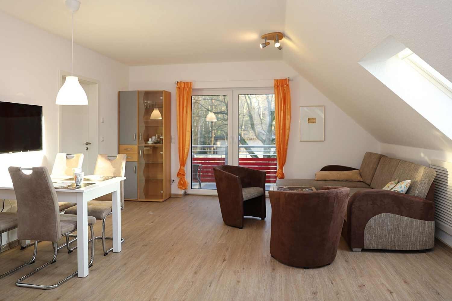 Haus Eichenkrone ist Teil eines Doppelhauses. Es liegt an der südlichen Boddenküste und am Nationalpark Vorpommersche Boddenlandschaft in reizvoller, waldreicher Landschaft.